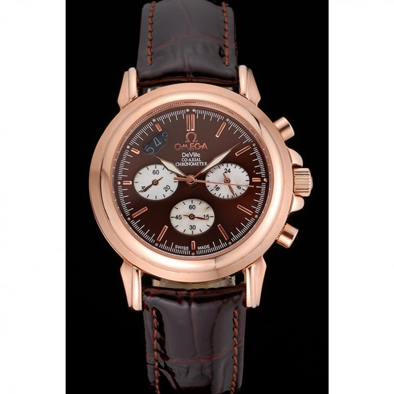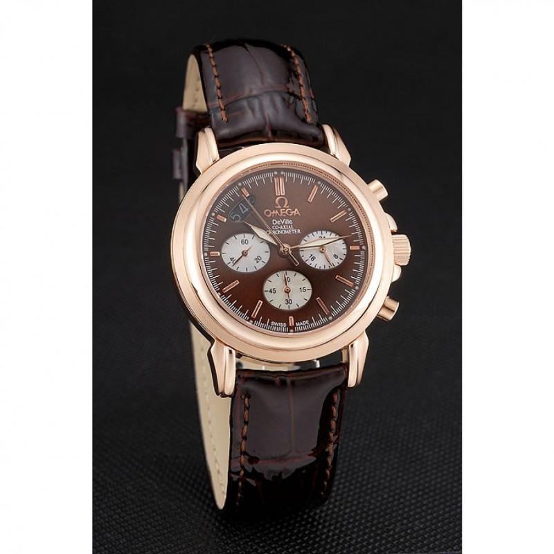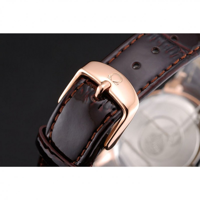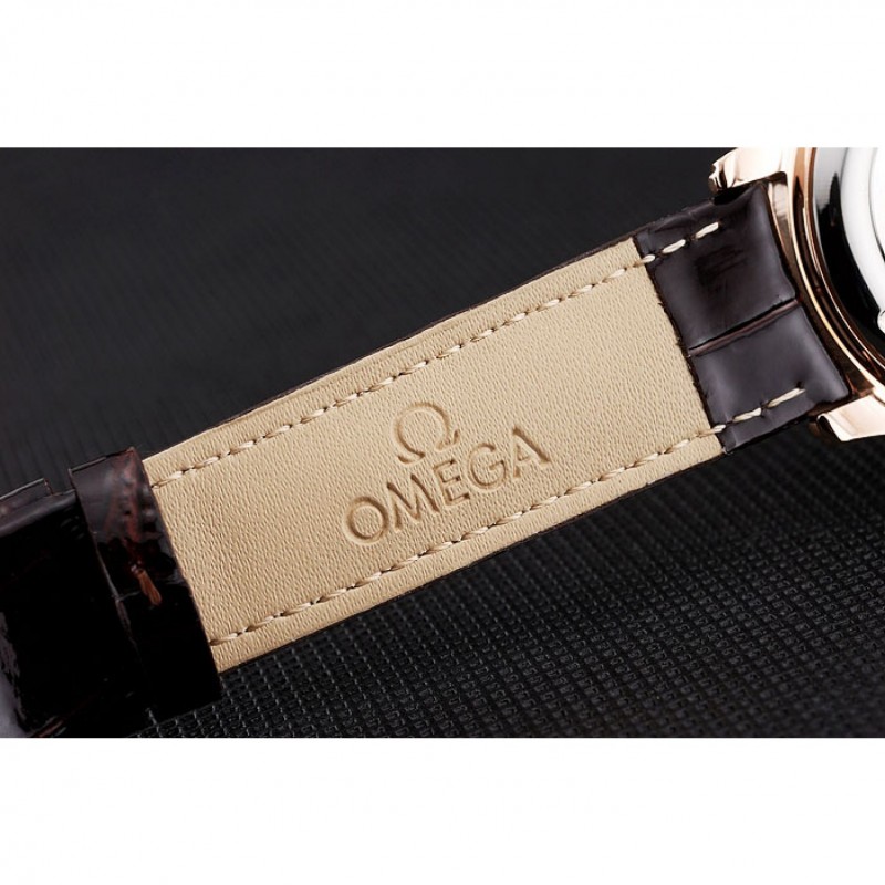 Bracciale: brevetto marrone cinturino in pelle di serpente con il calore in rilievo Omega timbro e messo in evidenza fittamente Omega logo hook-fibbia in oro rosa chiusura