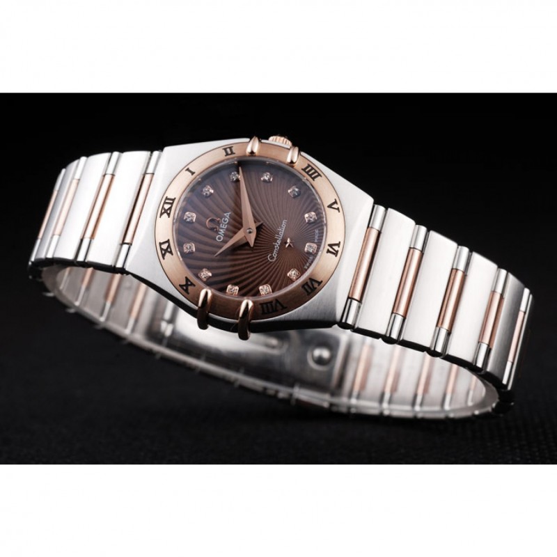 Bracciale: spazzolato acciaio inox e Rose- bracciale catena a maglia d’oro con chiusura nascosta e Omega logo sulla parte superiore