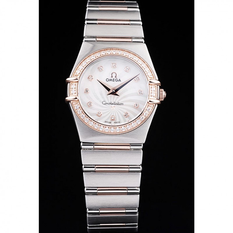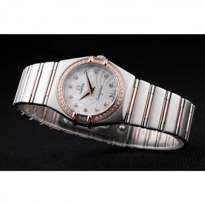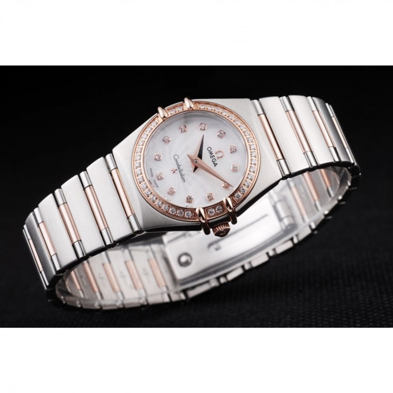 Questo orologio Omega Constellation con lunetta tempestata di diamanti è un accessorio elegante e funzionale. Il movimento al quarzo svizzero garantisce precisione, mentre la cassa e il bracciale in acciaio inox spazzolato conferiscono un aspetto raffinato. Il quadrante bianco e i diamanti rosa aggiungono un tocco di femminilità. Nonostante il suo design elegante, questo orologio è sorprendentemente confortevole e calza fedelmente alla taglia. L’unico aspetto negativo è che non è impermeabile, quindi è meglio evitare di indossarlo durante la doccia o il nuoto.