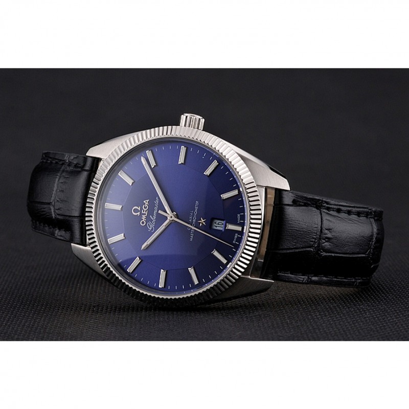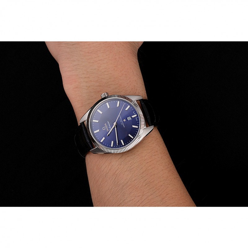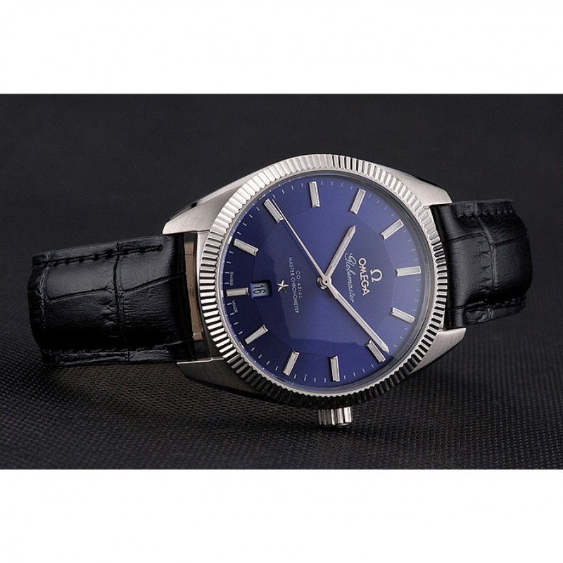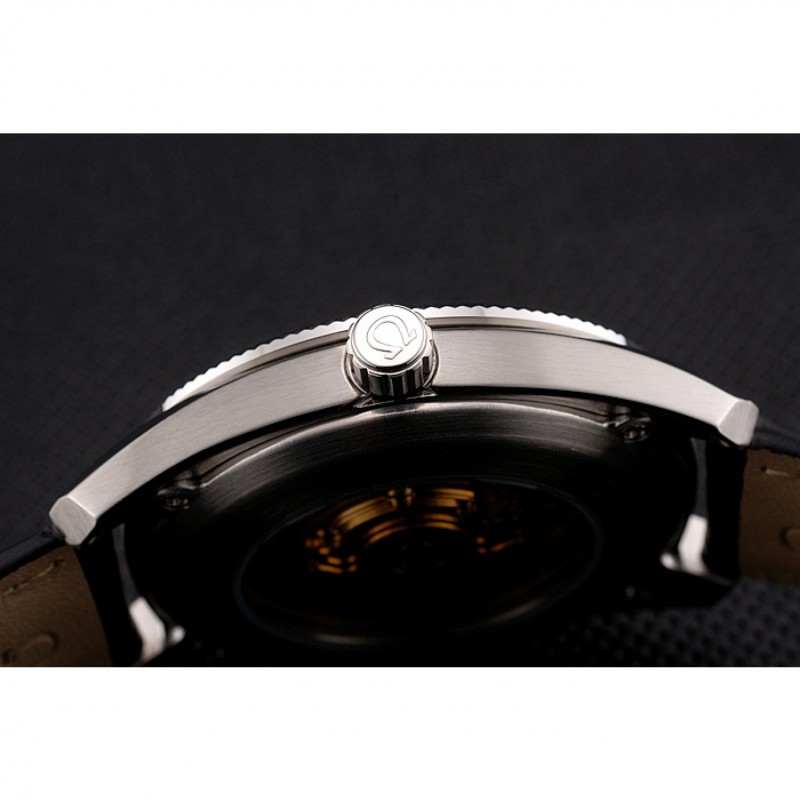 Bracciale: logo e calore Omega goffrato cinturino in pelle di coccodrillo nera con logo inciso acciaio inox lucido gancio-chiusura