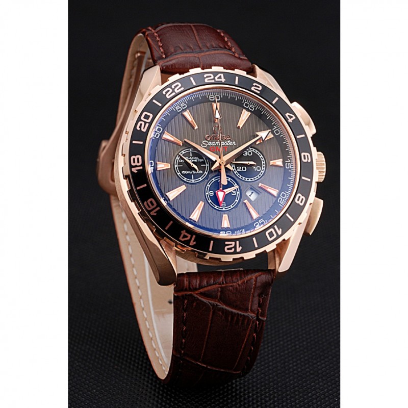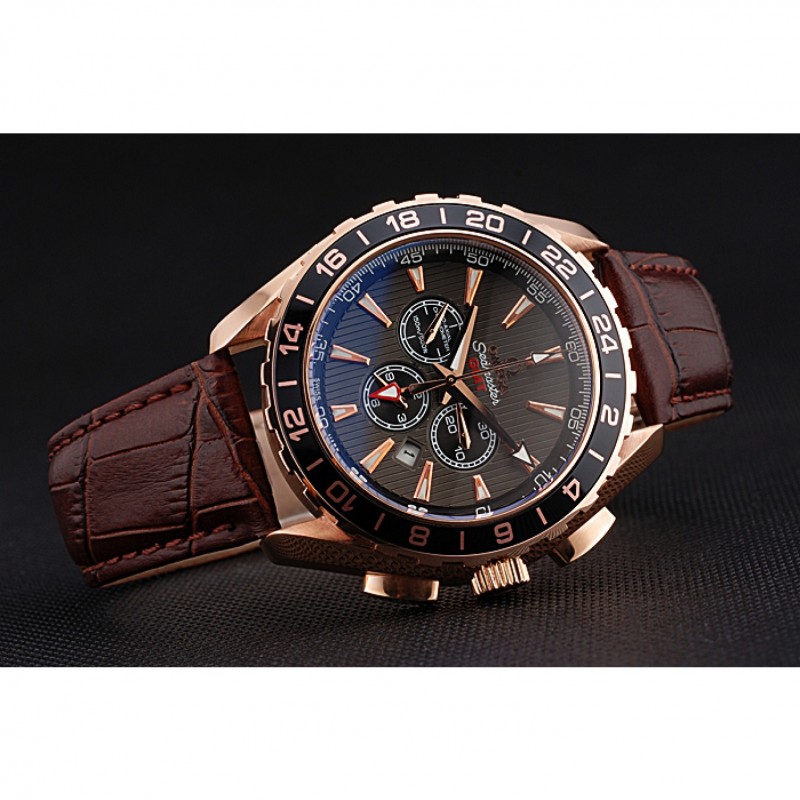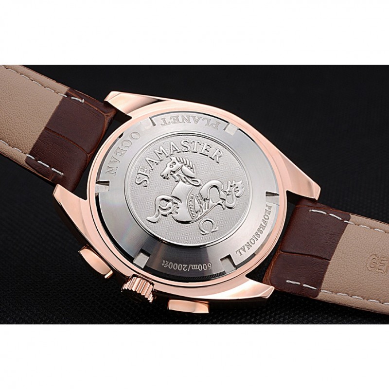 Bracciale:cinturino in pelle di coccodrillo marronelogo e calore Omega in rilievo con il logo 18k inciso in oro rosa placcato catenaccio del gancio