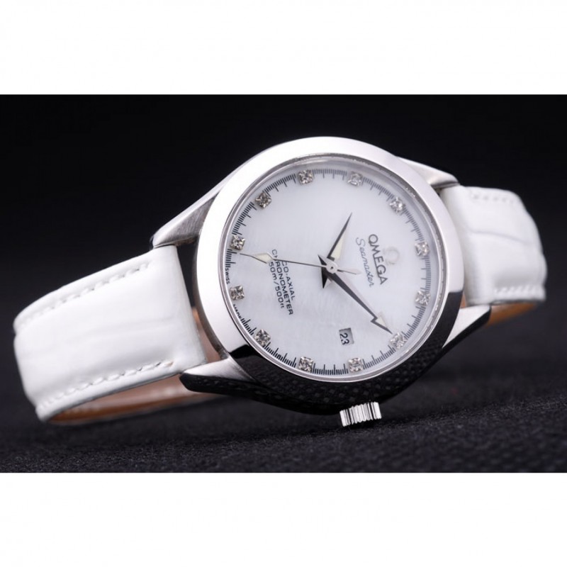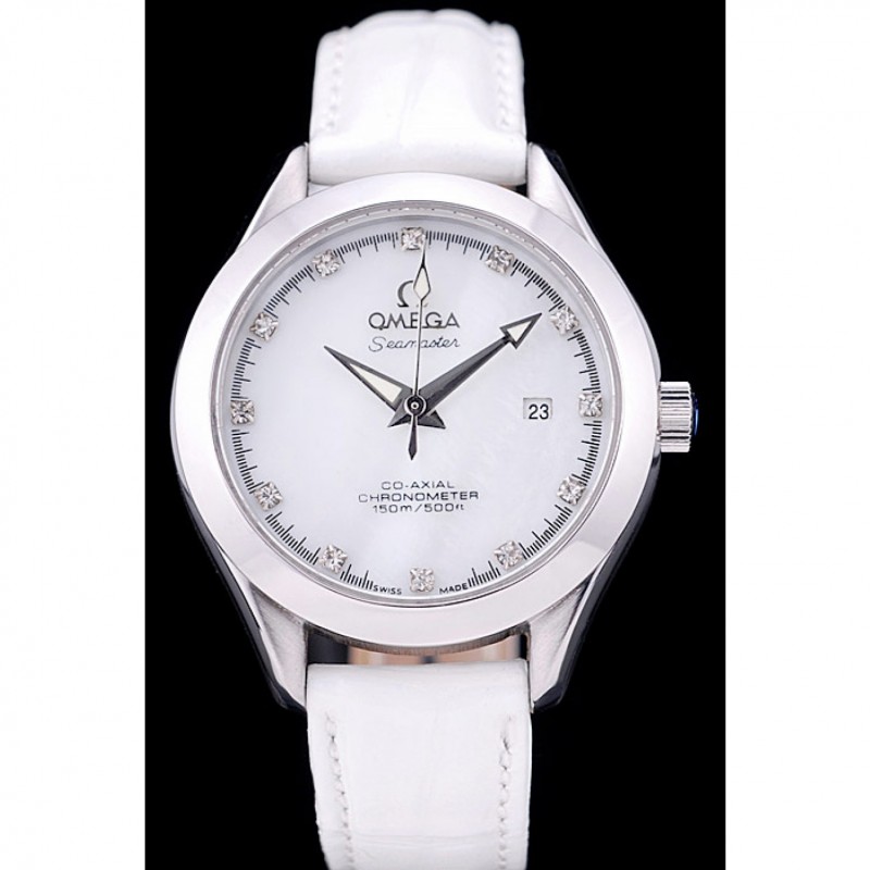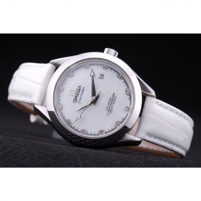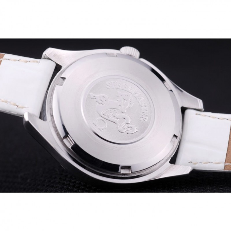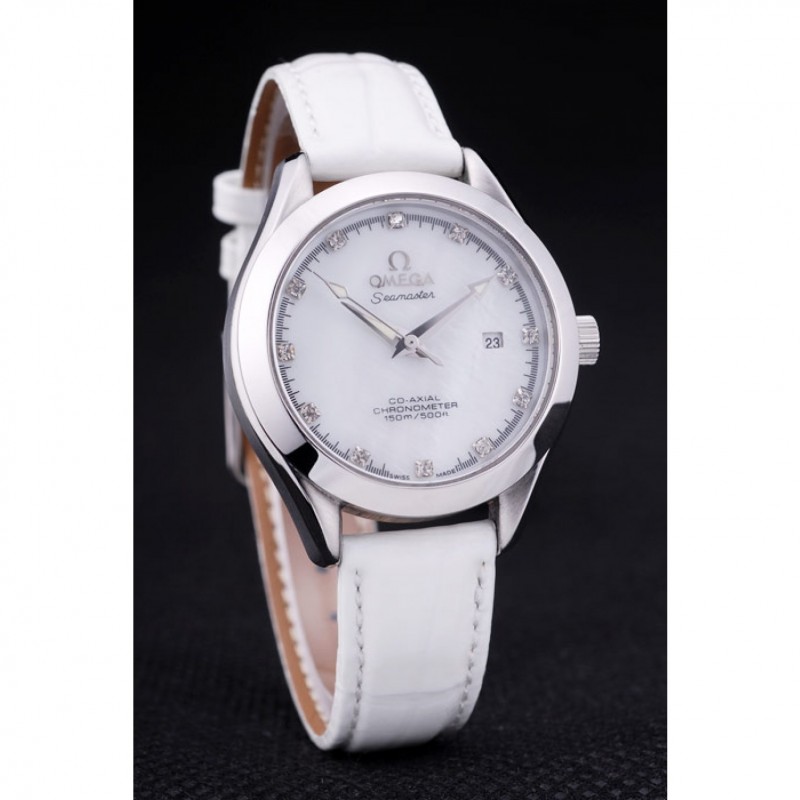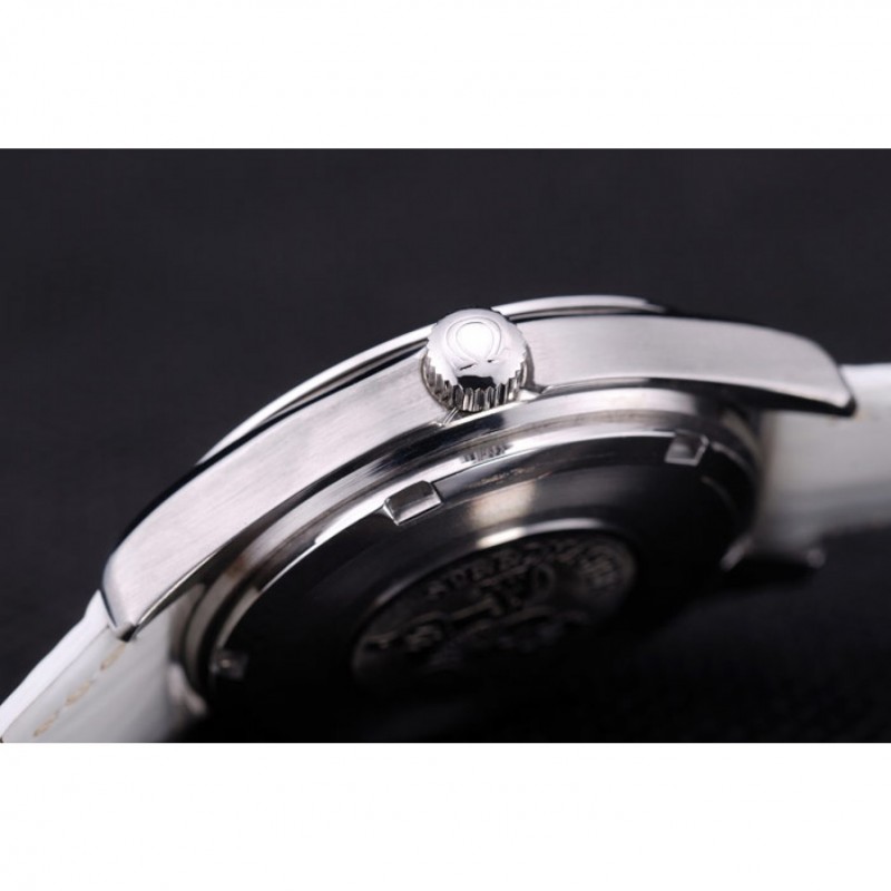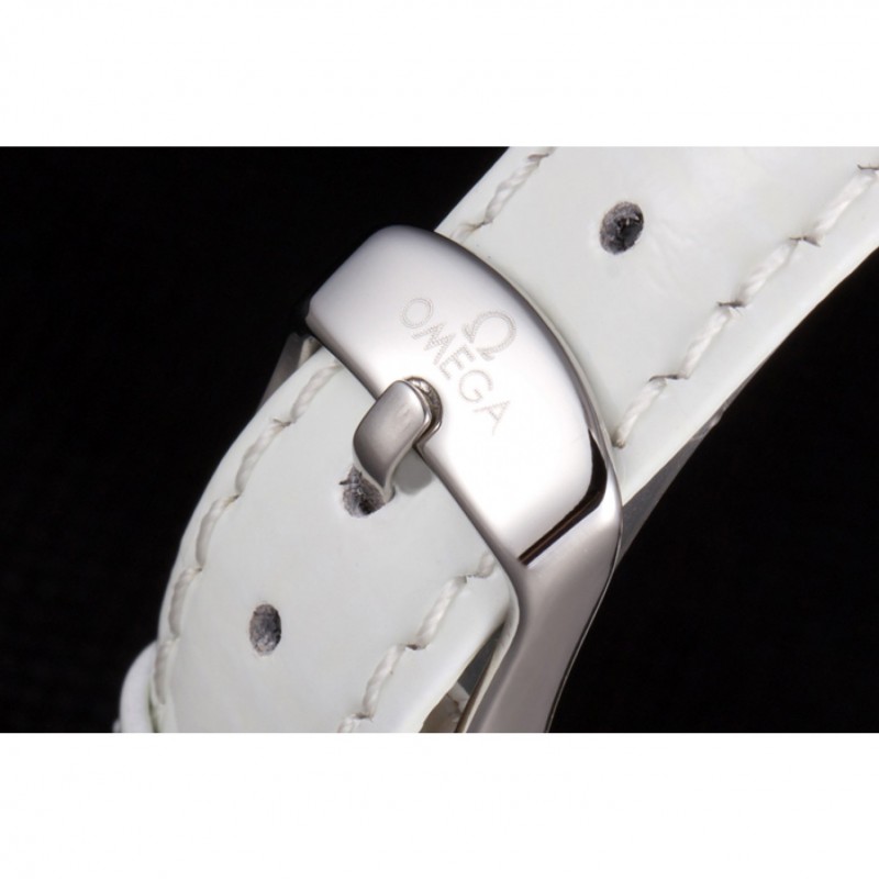 Bracciale: calore Omega impresso cinturino in pelle di coccodrillo bianco vernice con Omega inscritto inossidabile lucidato fibbia in acciaio gancio-fibbia