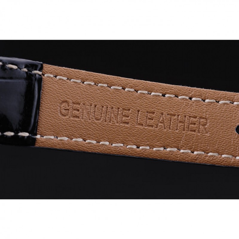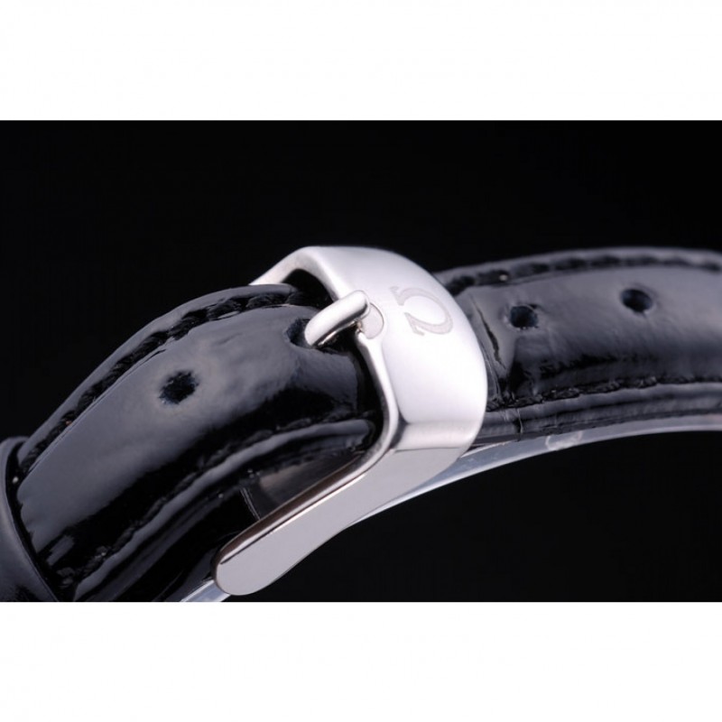 Bracciale: cinturino in pelle di coccodrillo verniciata nera calore Omega in rilievo con Omega inscritto in acciaio inox gancio-fibbia chiusura lucidato