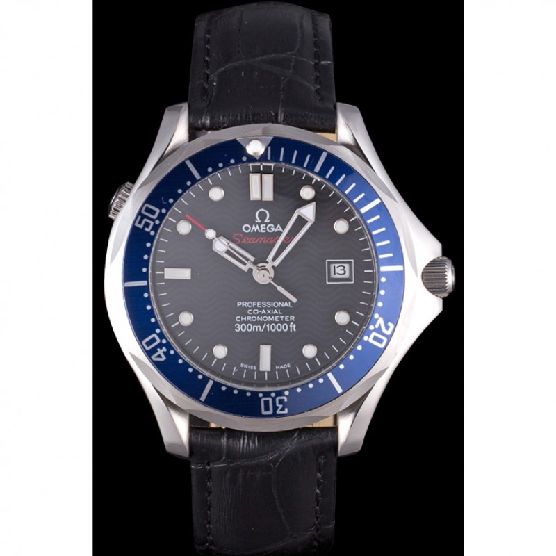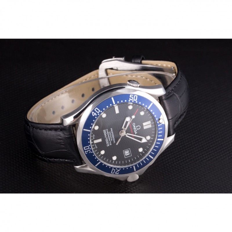 Bracciale: calore Omega impresso cinturino in pelle di coccodrillo nero con Omega inscritta catenaccio del gancio in acciaio inox lucidato