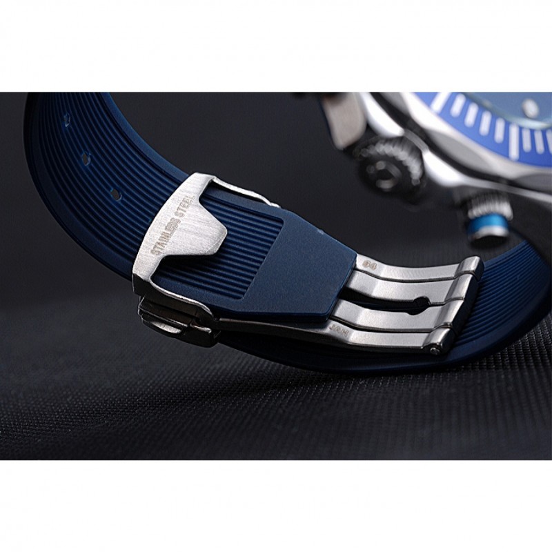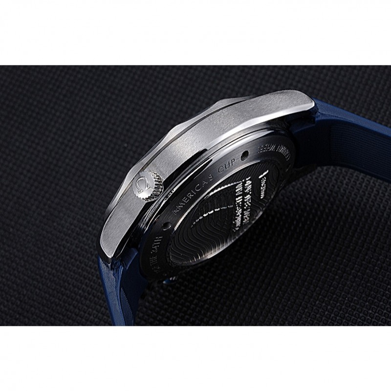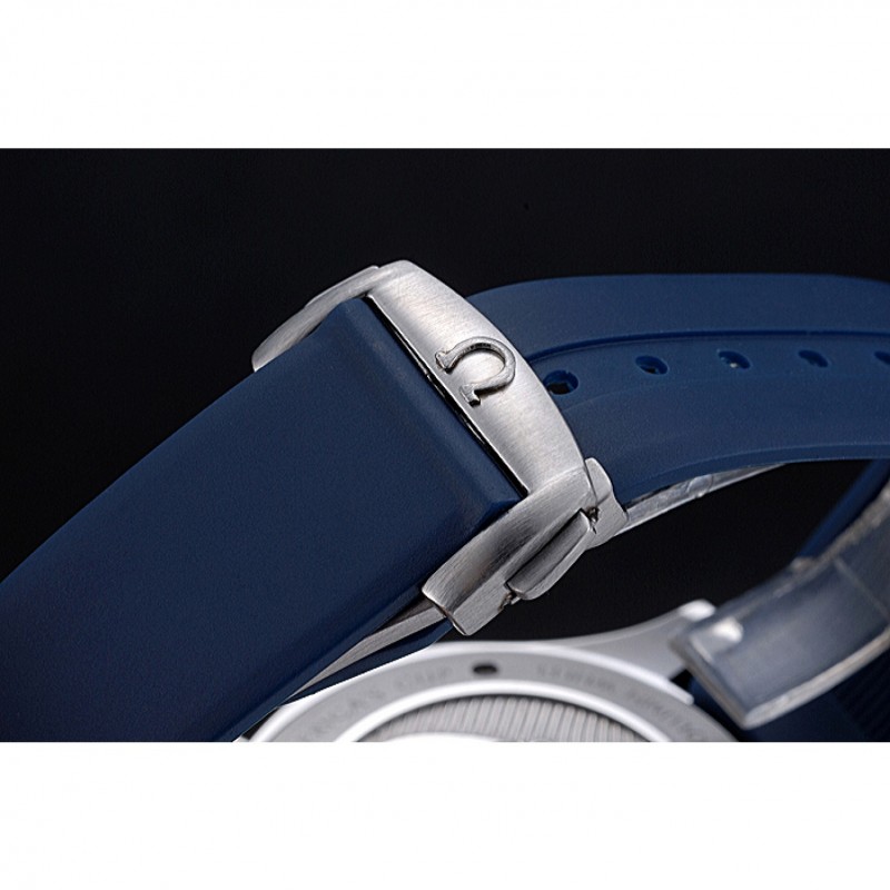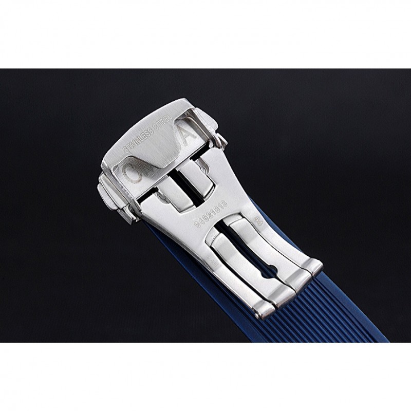 braccialetto: cinturino in gomma blu calore Omega impresso Omega logo inciso armadio a gancio chiusura push-rilascio acciaio inox satinato