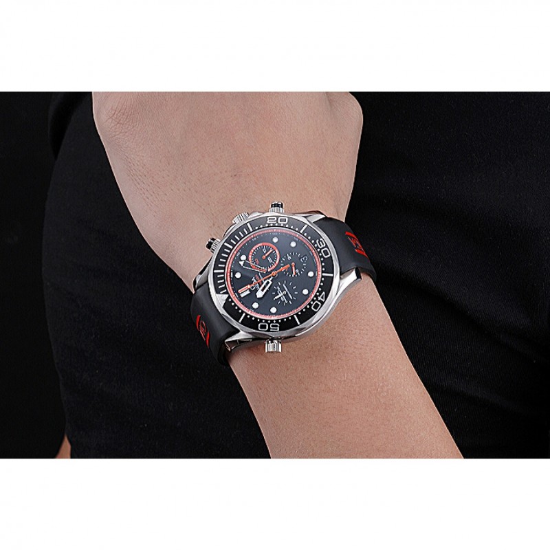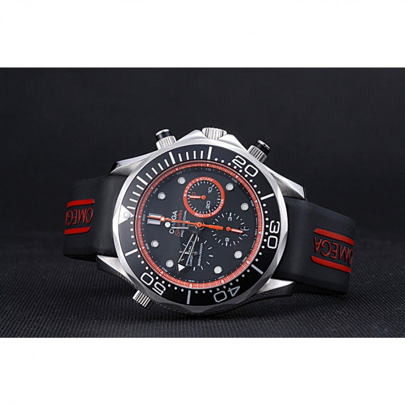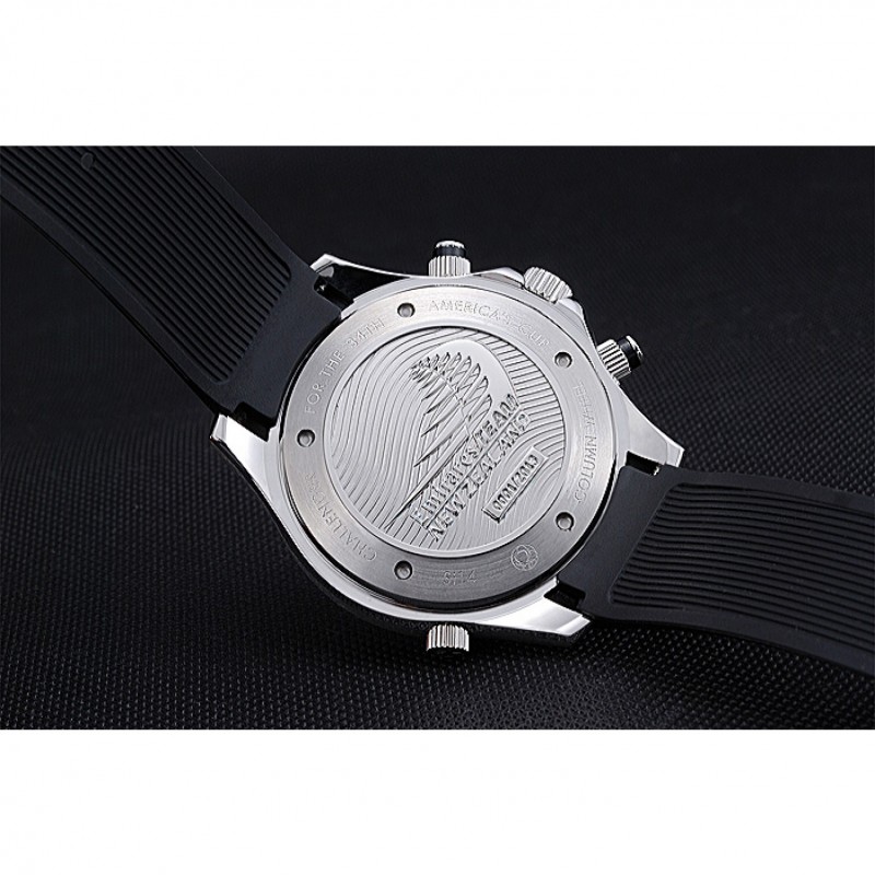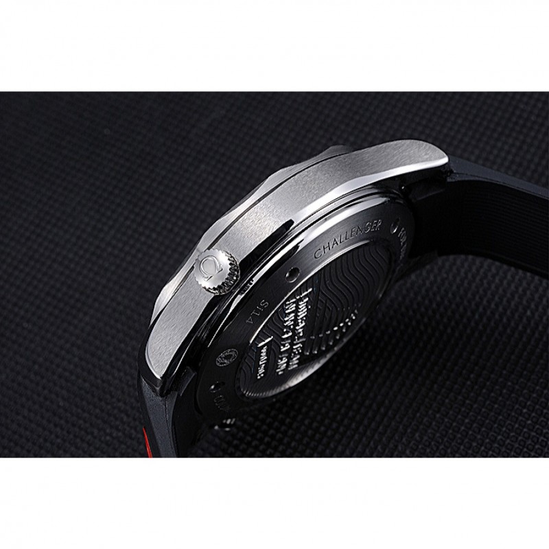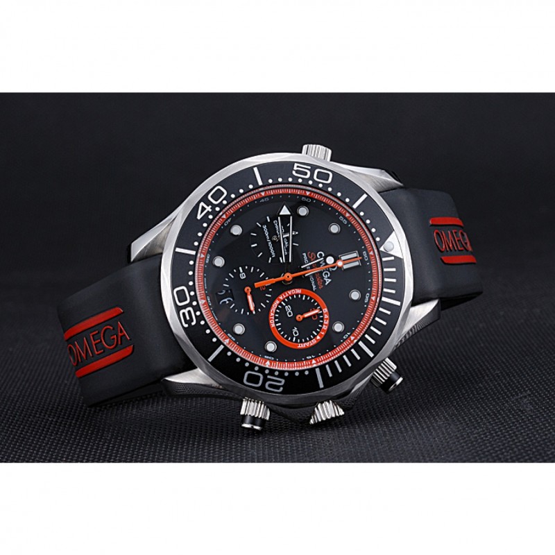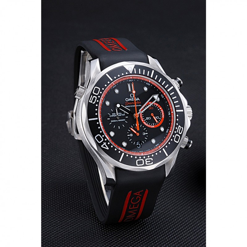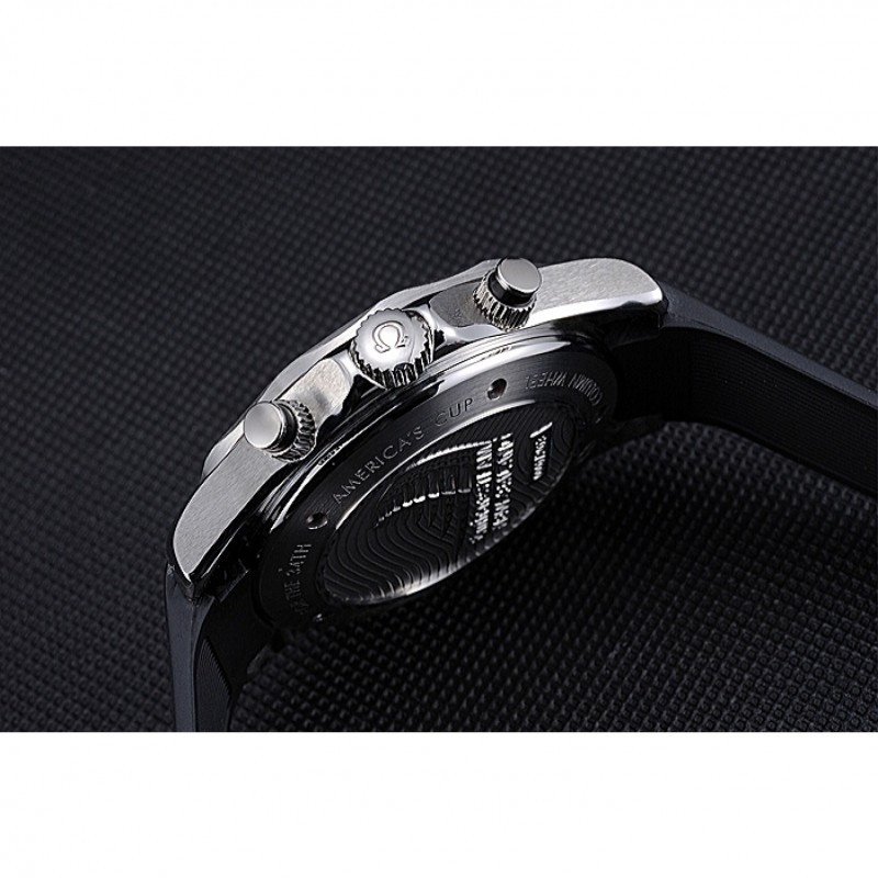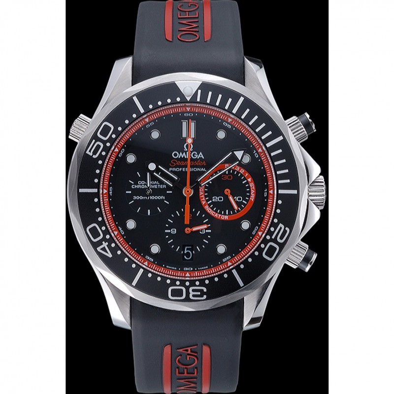 corona: Omega logo inciso lucido corona intaglio in acciaio inossidabile con la striscia di smalto nero pulsante rotondo corona su entrambi i lati di esso, più un logo inciso lucido corona intaglio in acciaio inox in alto a fronte