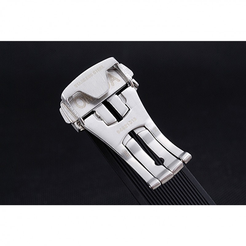 braccialetto: cinturino in gomma nera calore Omega goffrato con Omega logo inciso armadio a gancio chiusura push-rilascio acciaio inox satinato