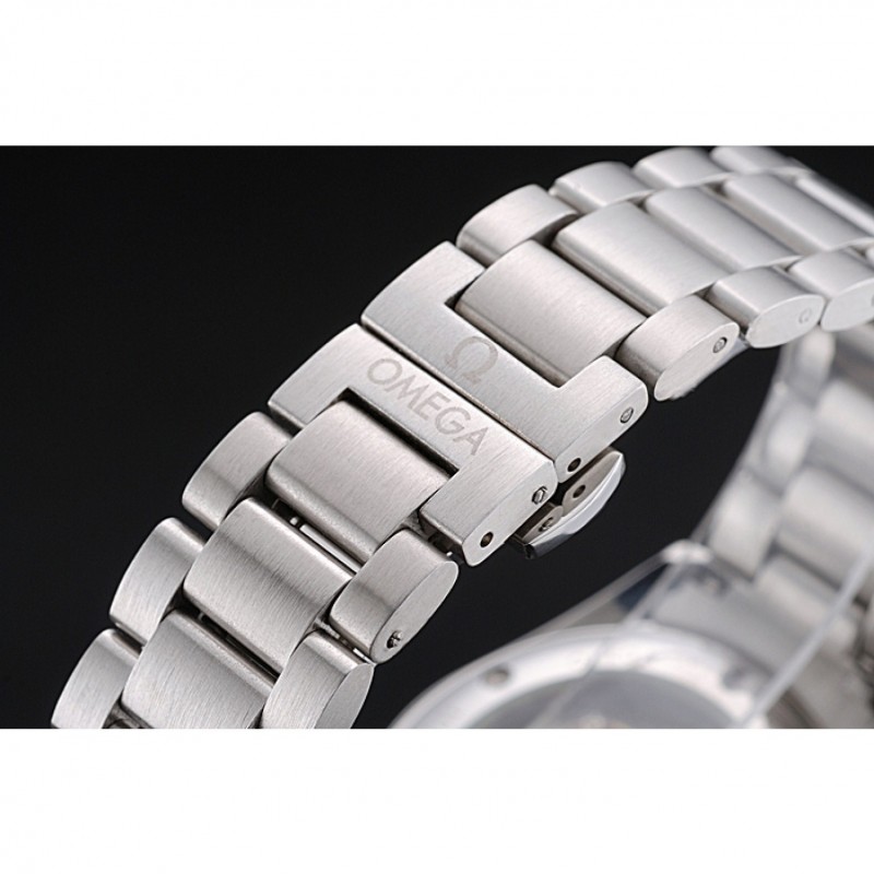 Torna: in acciaio inox lucido snap-in indietro con la meccanica trasparenti rivelando centro e incisione Omega Seamaster