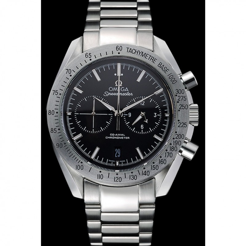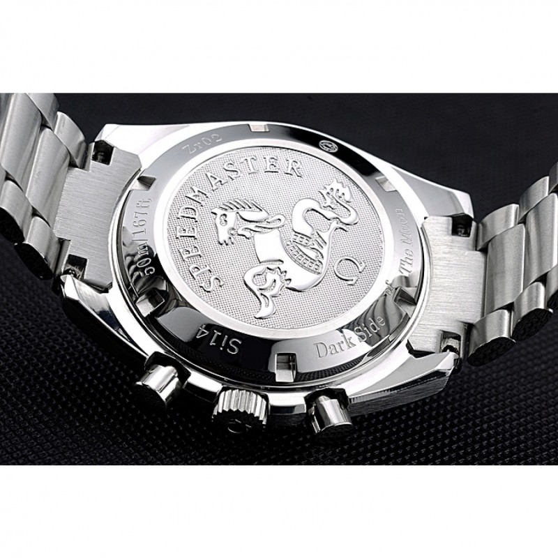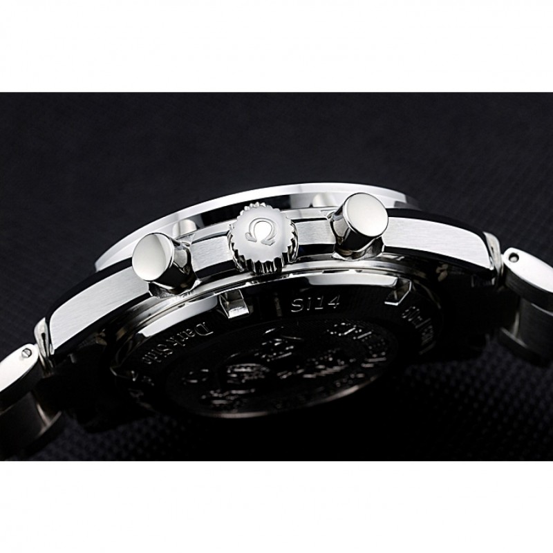 Corona : Omega logo inciso lucido corona intaglio in acciaio inox con un giro pulsante della corona su entrambi i lati di esso