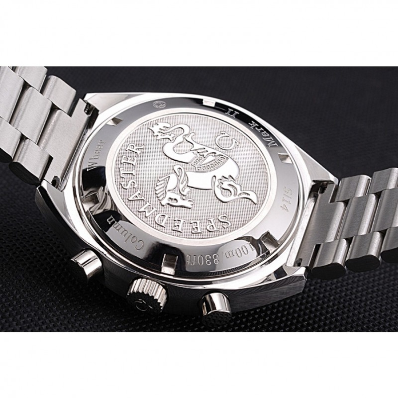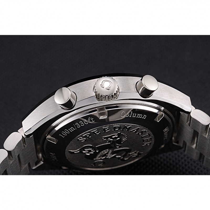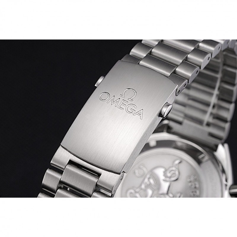 Corona: Omega logo inciso lucido corona intaglio in acciaio inox con un giro pulsante della corona su entrambi i lati di esso