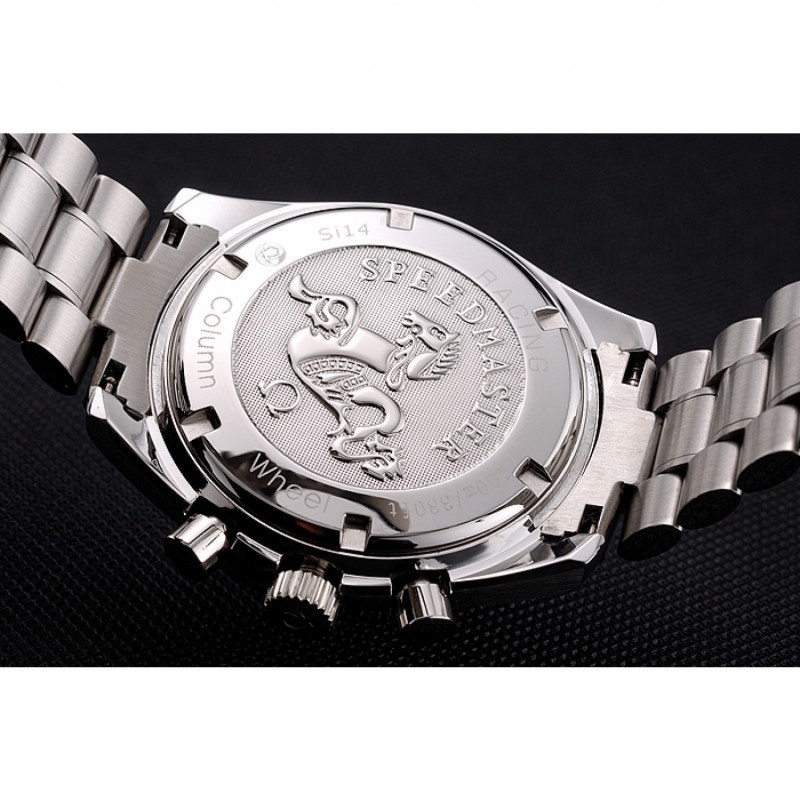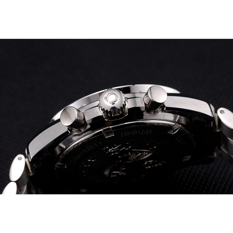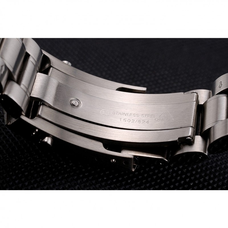 Corona: Omega logo inciso lucido corona intaglio in acciaio inox con un giro pulsante della corona su entrambi i lati di esso