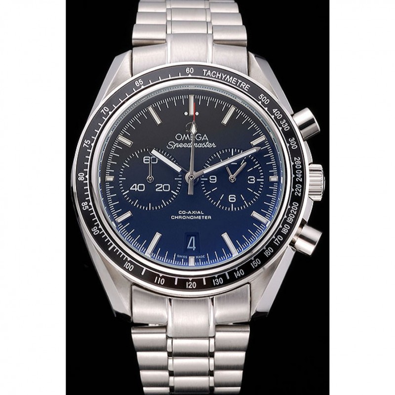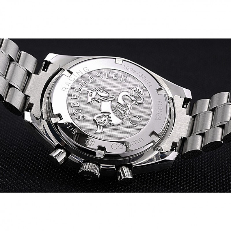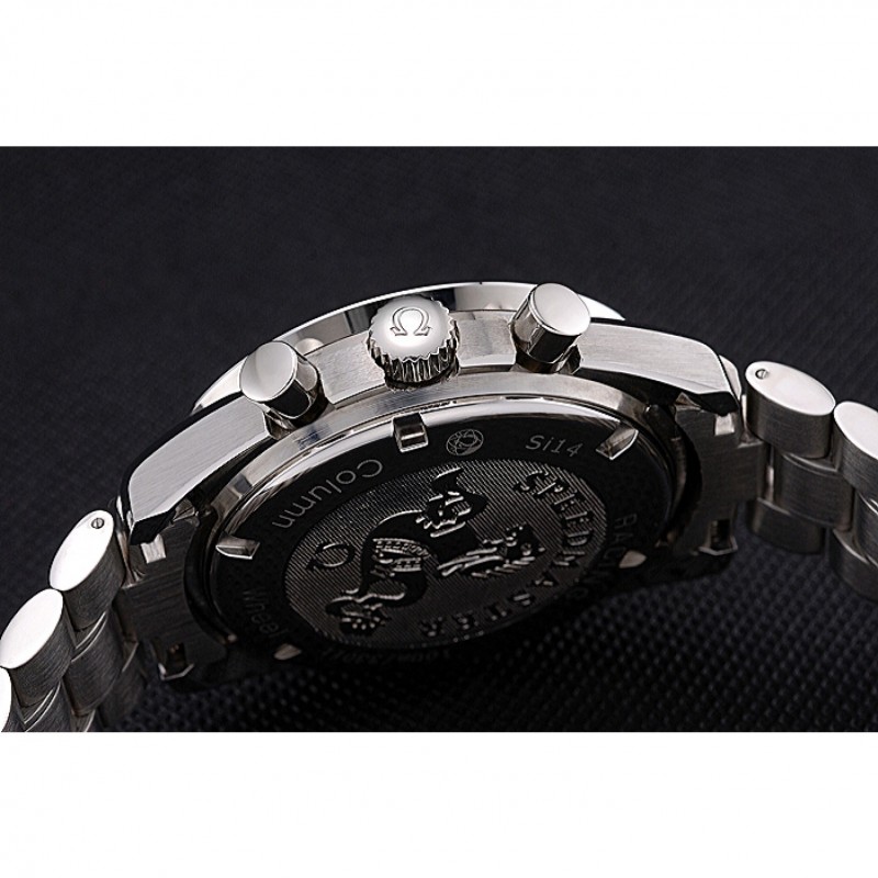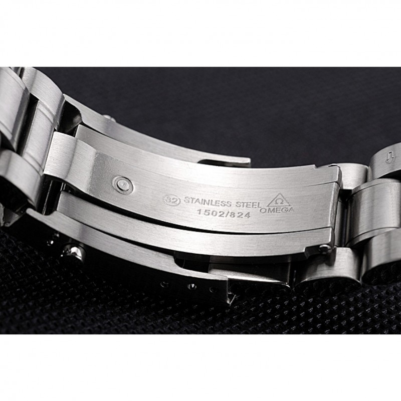 Corona: Omega logo inciso lucido corona intaglio in acciaio inox con un giro pulsante della corona su entrambi i lati di esso