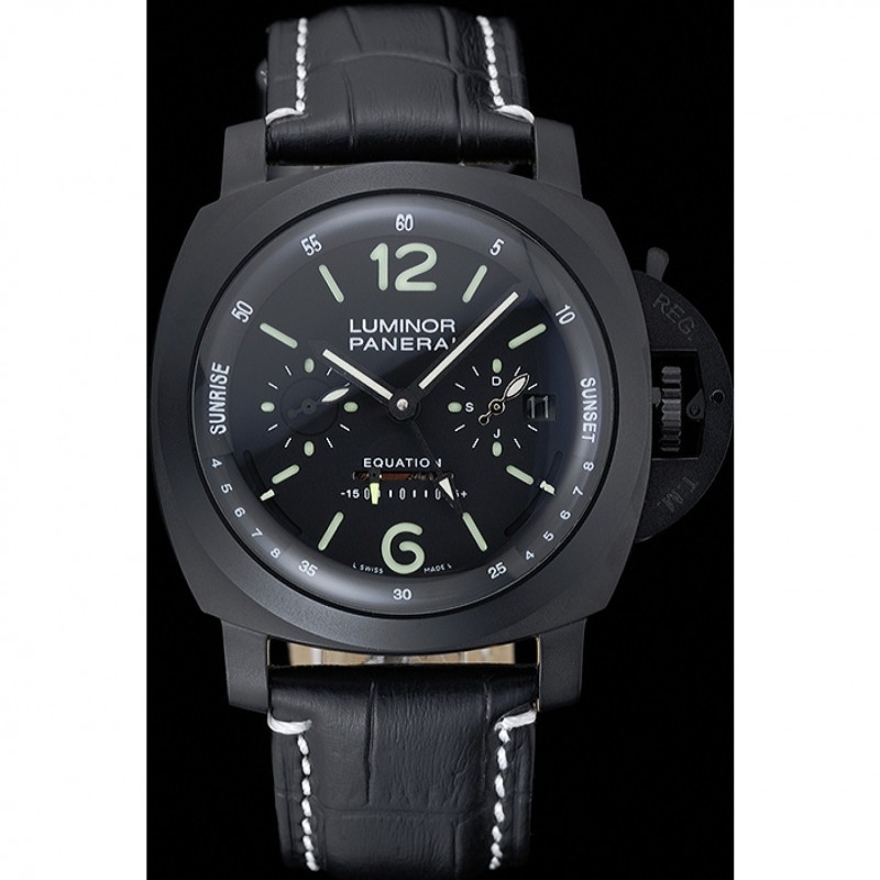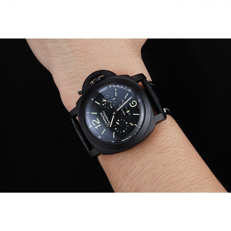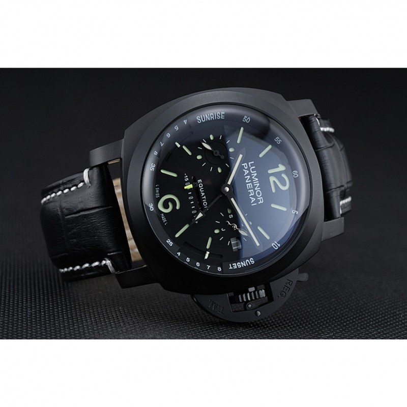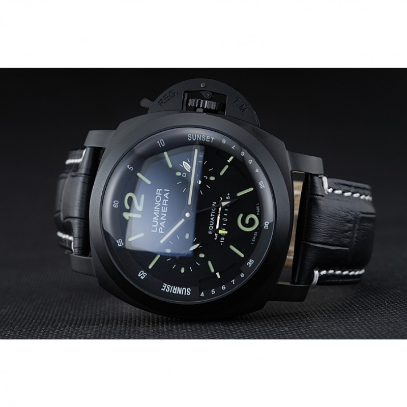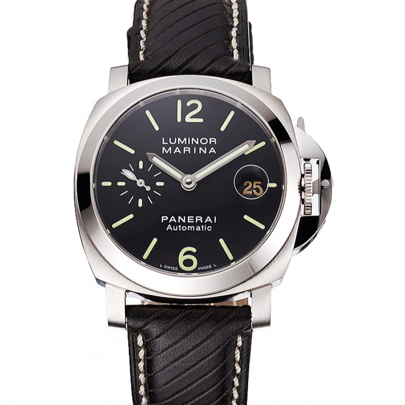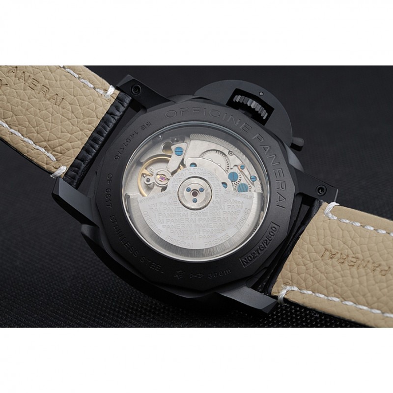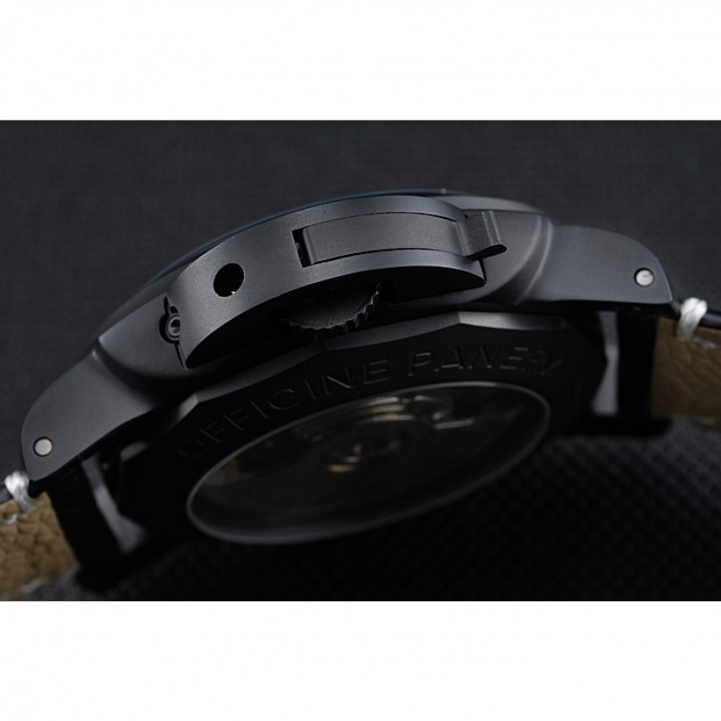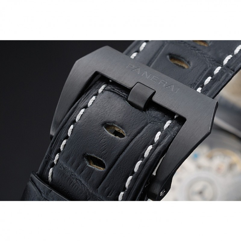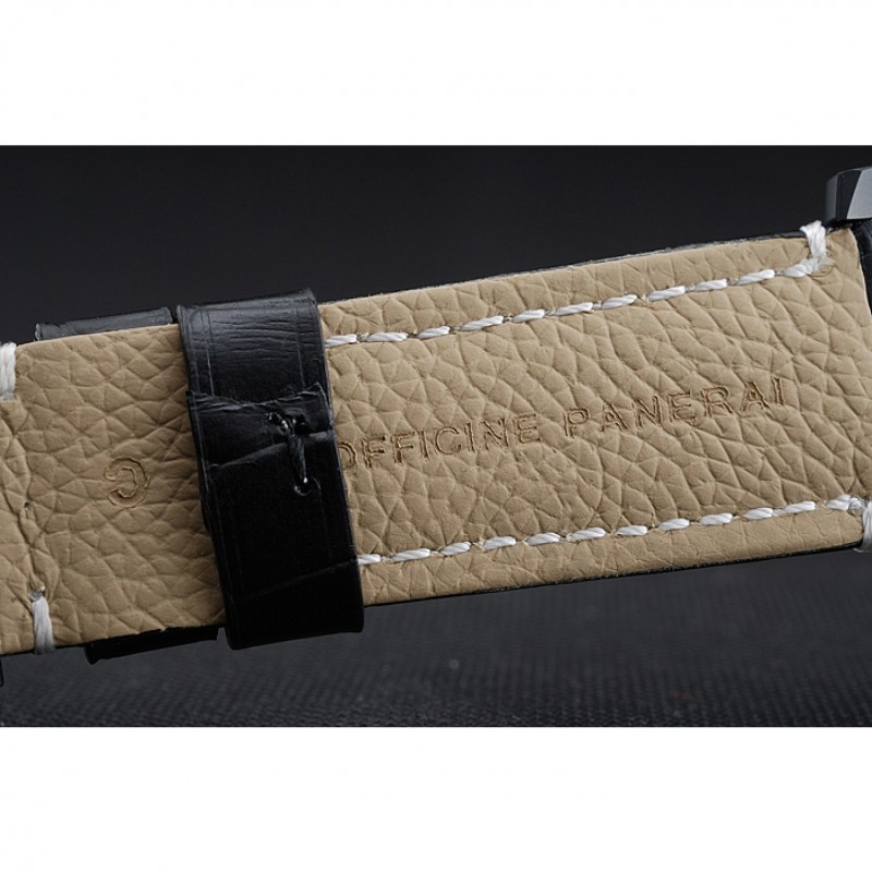 braccialetto: pelle nera cinturino con cuciture bianche e calore goffrato Luminor Panerai timbro e acciaio inossidabile catenaccio del gancio fibbia ione-placcato con incisione Panerai