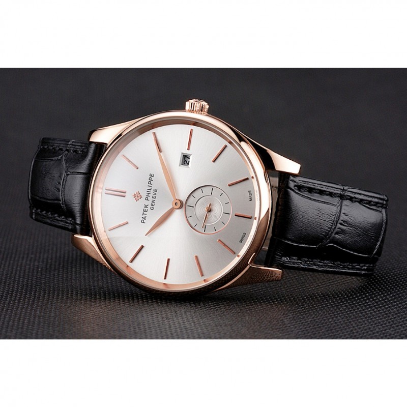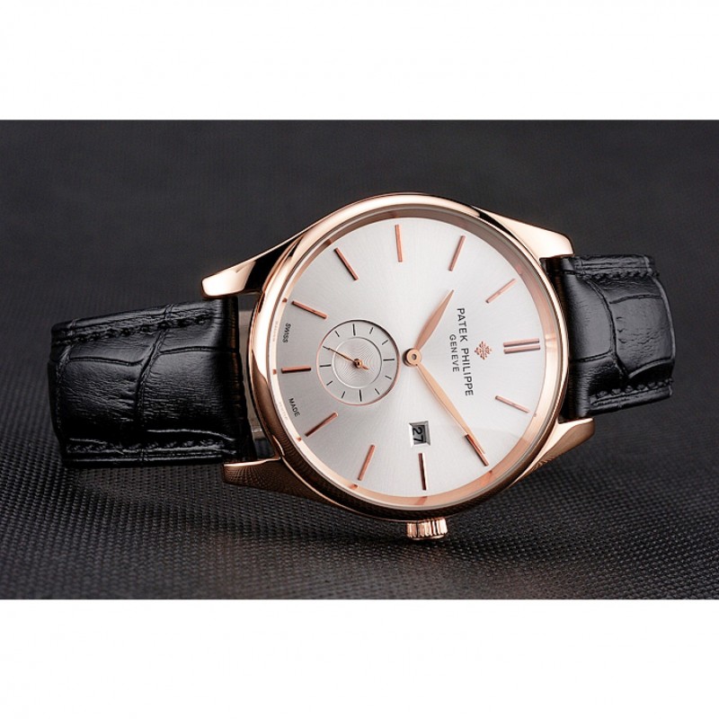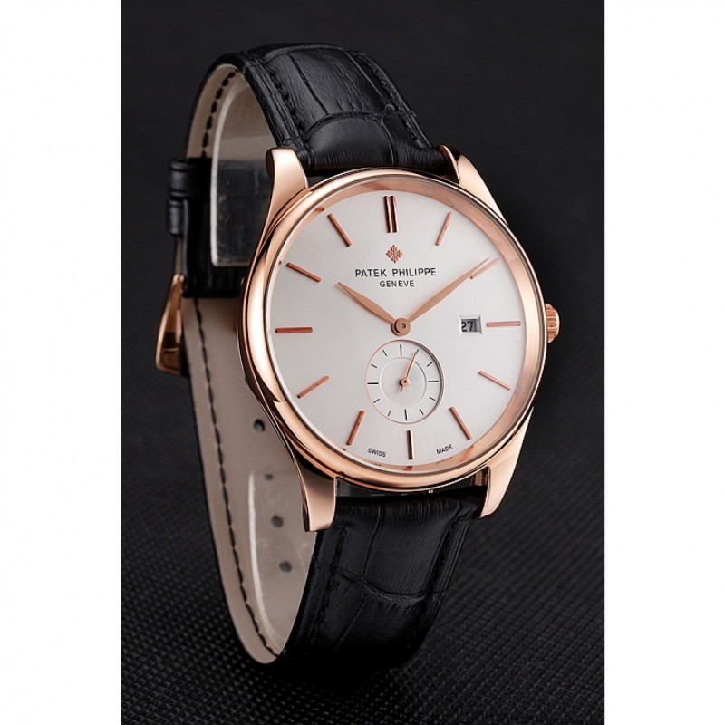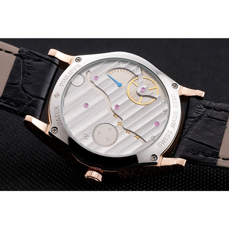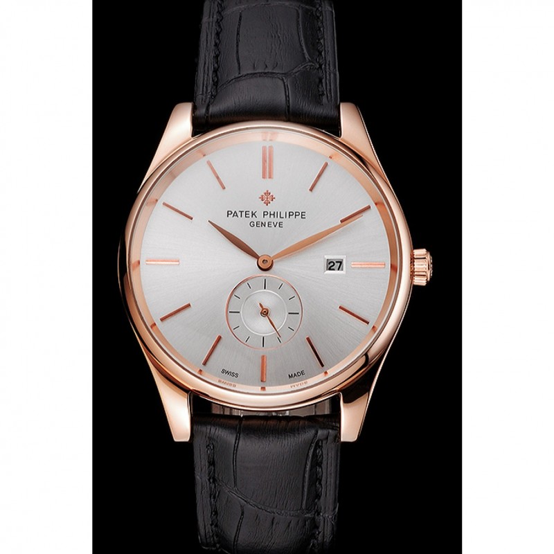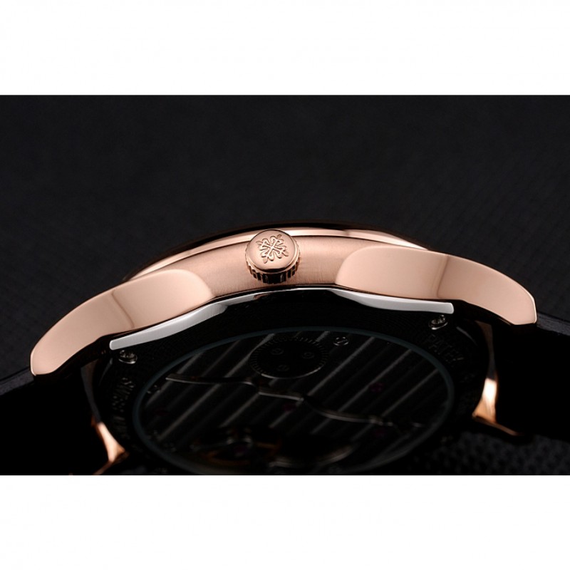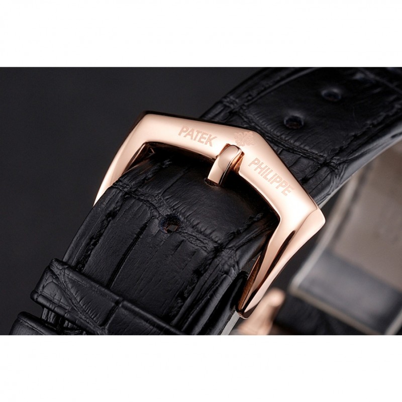 Bracciale: logo e calore Patek Philippe in rilievo cinturino in pelle di coccodrillo nera con logo e Patek Philippe inciso placcato oro rosa 18 carati in oro catenaccio del gancio-fibbia