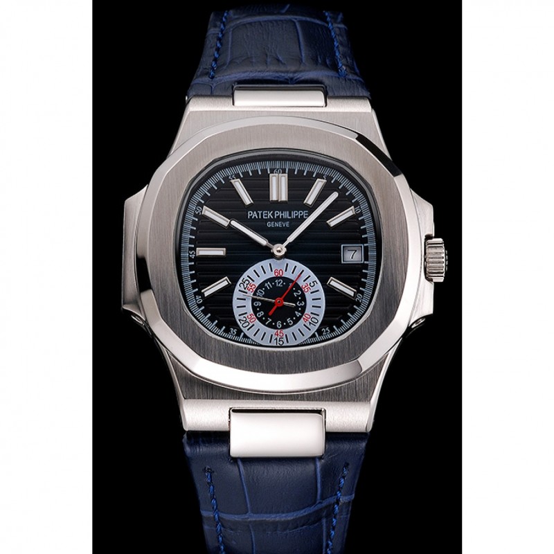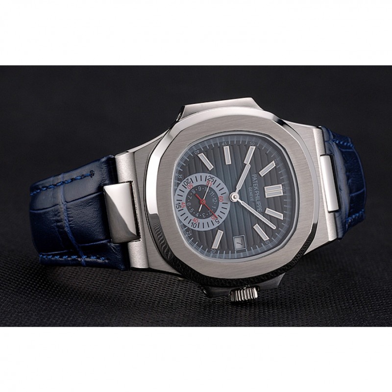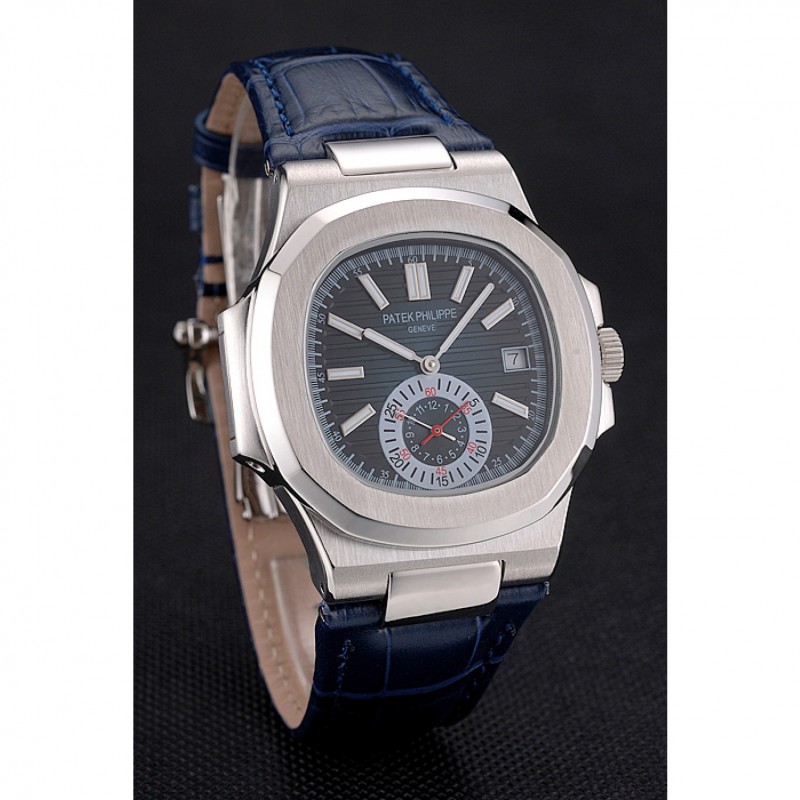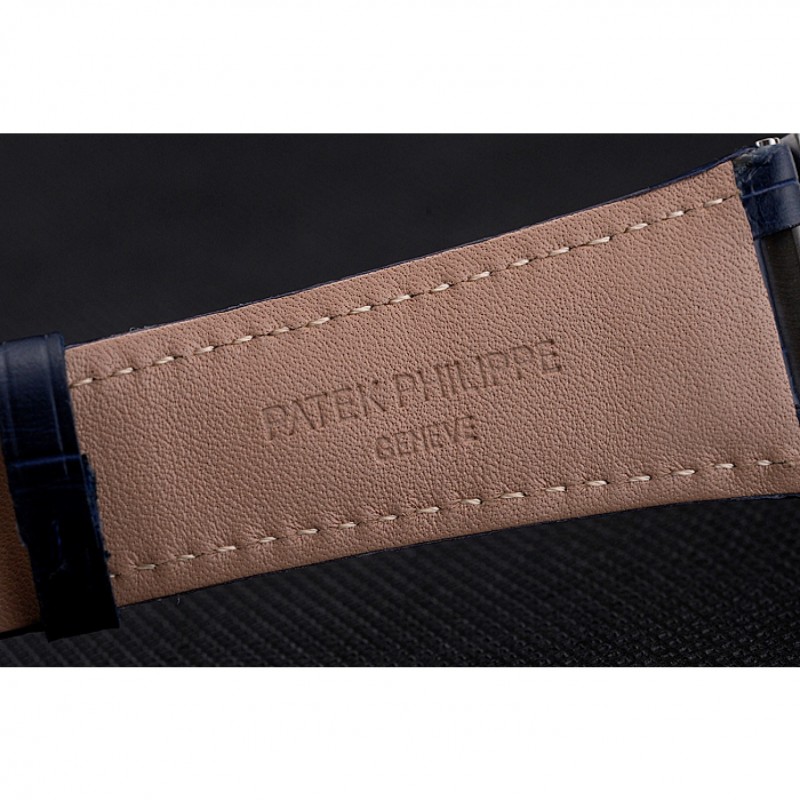 Bracciale: Patek Philippe Geneve calore impresso cinturino in pelle blu coccodrillo con Nautilus inciso fibbia chiusura in acciaio inox lucidato