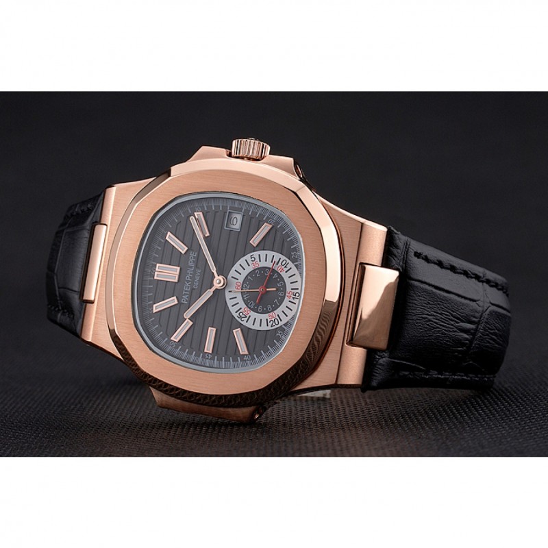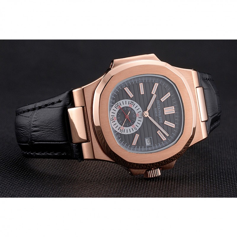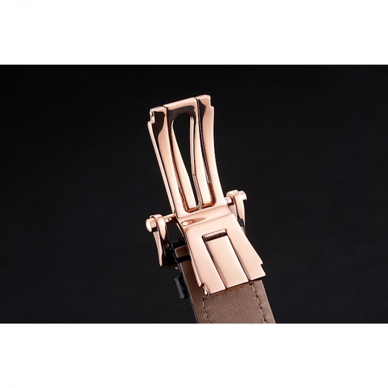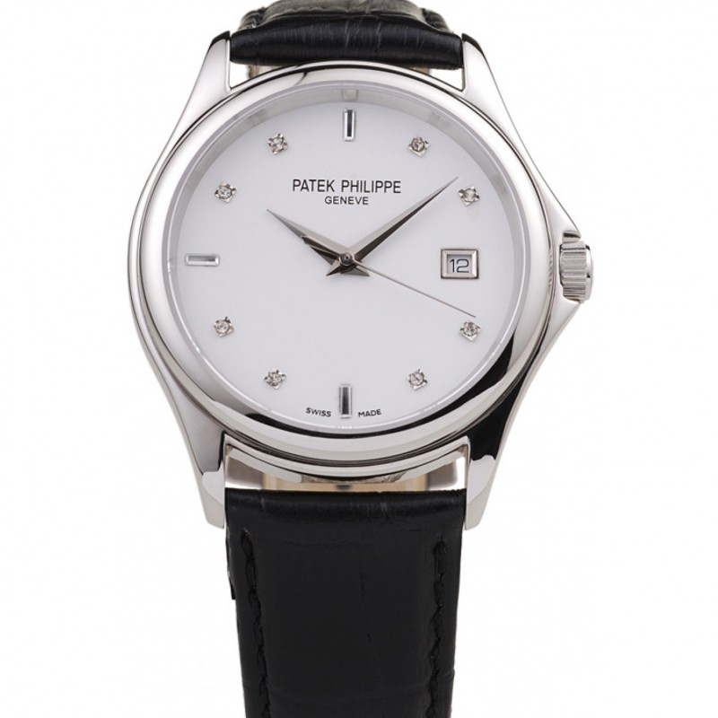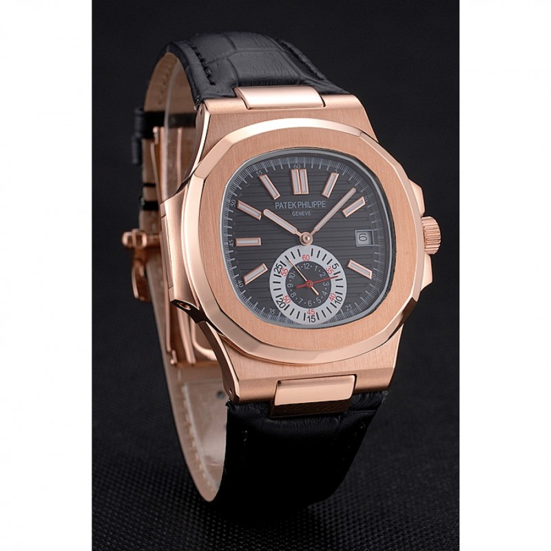 Bracciale: Patek Philippe Geneve calore impresso cinturino in pelle di coccodrillo nera con Nautilus inciso fibbia in acciaio inox lucidato