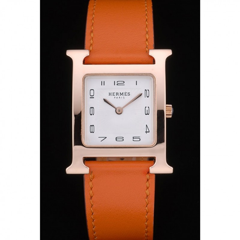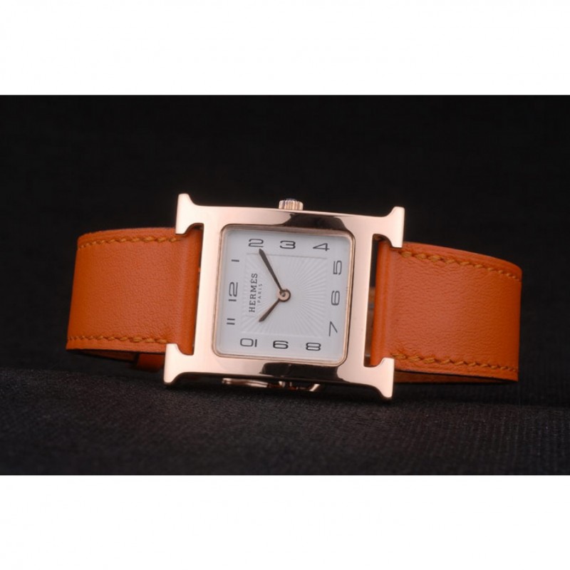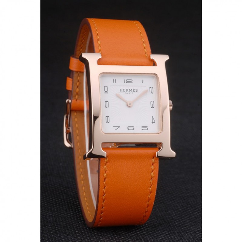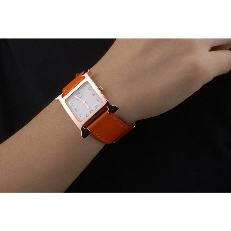 braccialetto: arancione calore impresso cinturino in pelle Hermes Hermes incisa placcato 18k oro rosa gancio fibbia chiusura