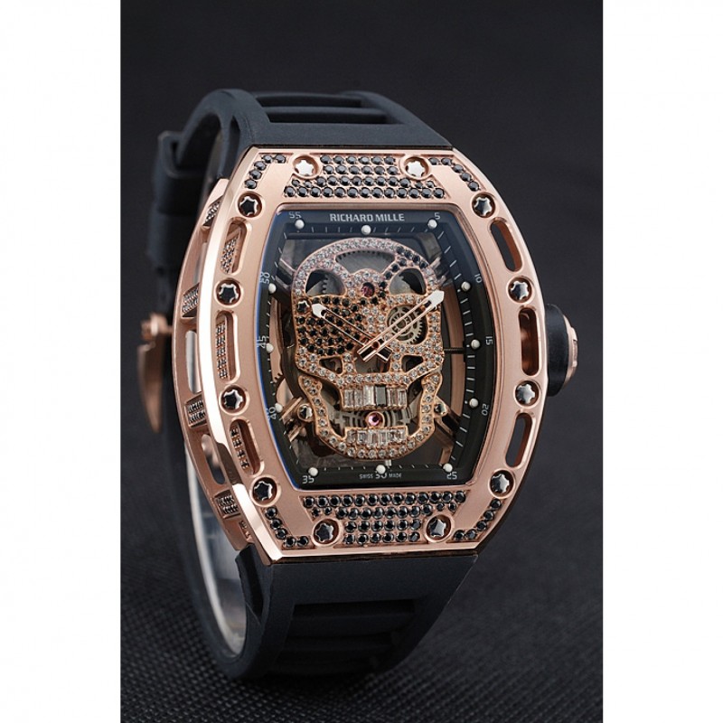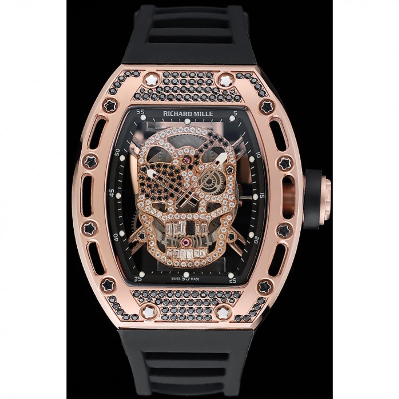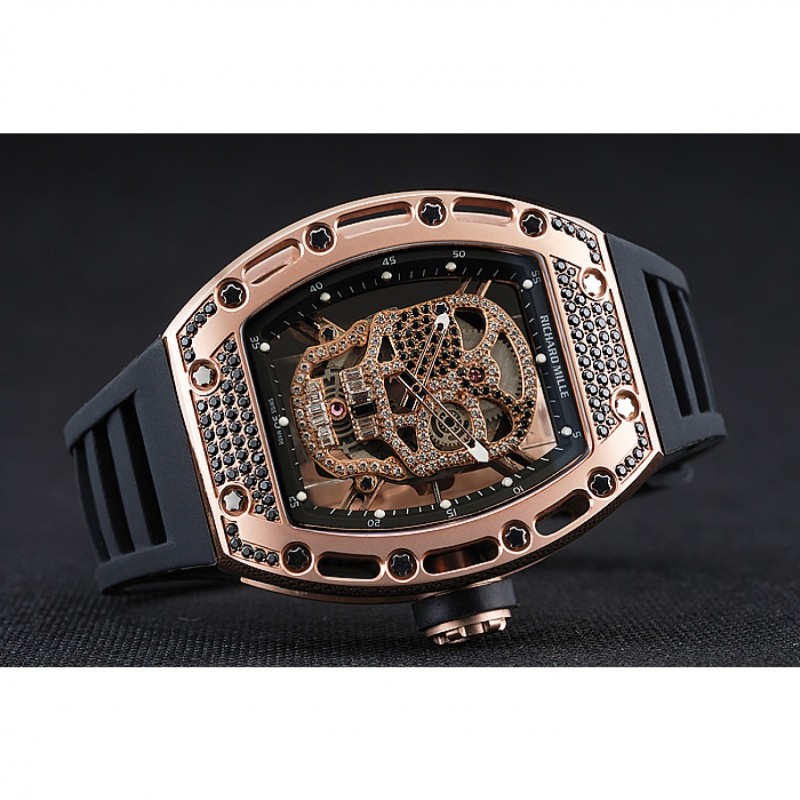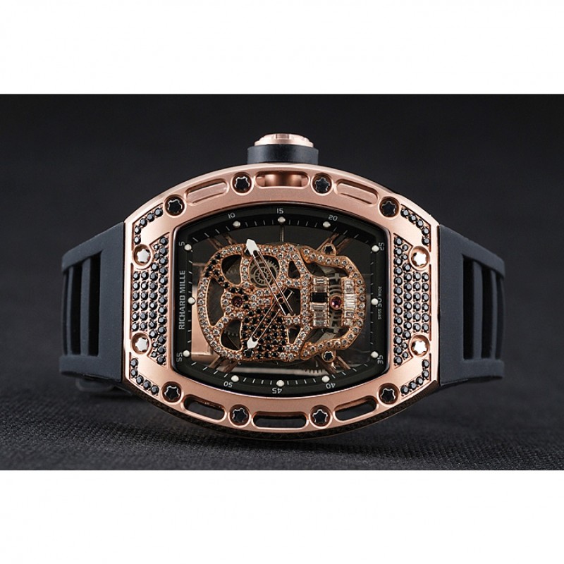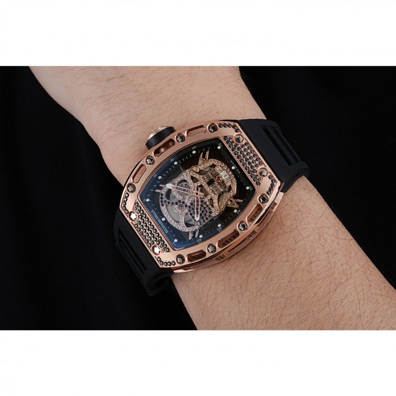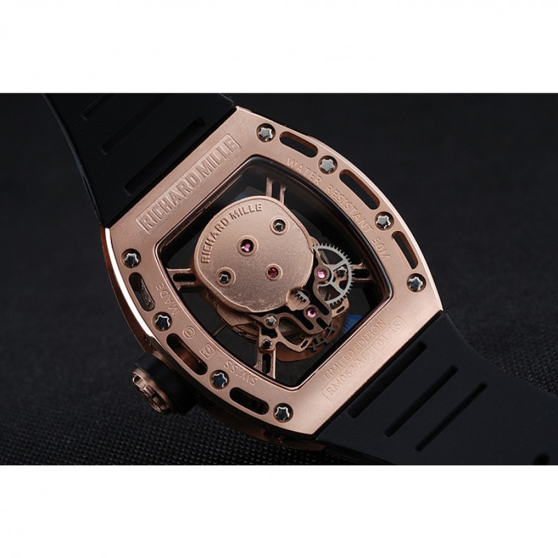Torna: 18k oro rosa placcato avvitato sul retro con meccanica-rivelatrice trasparenti centro e incisioni Richard Mille