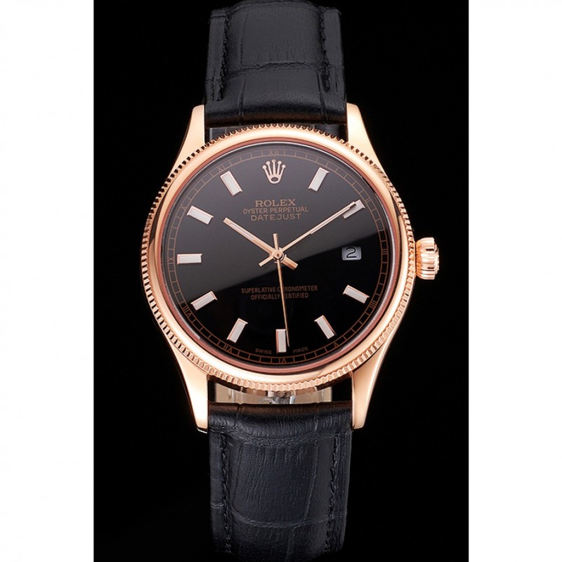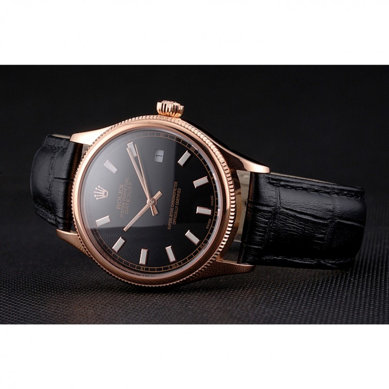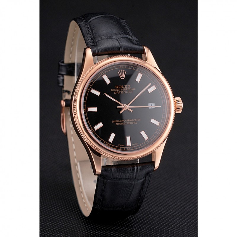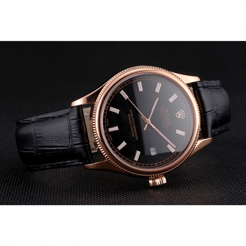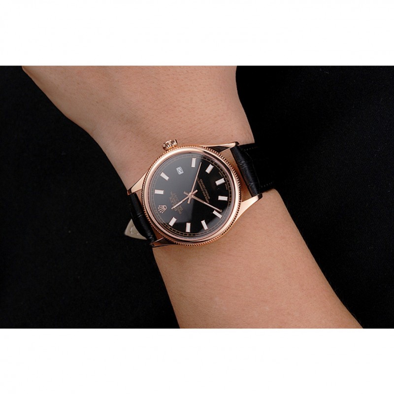 Bracciale: coccodrillo nero Rolex e il logo di calore in rilievo cinturino in pelle con Rolex logo 18k scolpito in oro rosa placcato catenaccio del gancio-fibbia