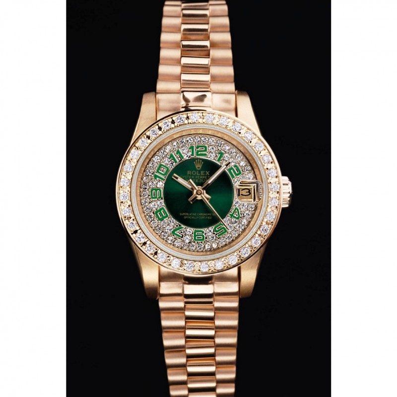 Torna: oro giallo 18k plated caso a pressione in acciaio inox posteriore con verde Rolex timbro logo