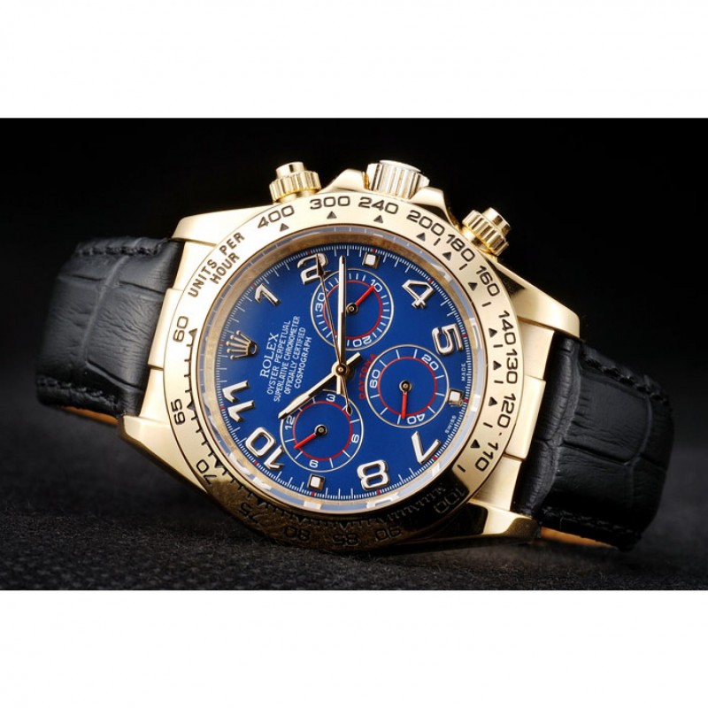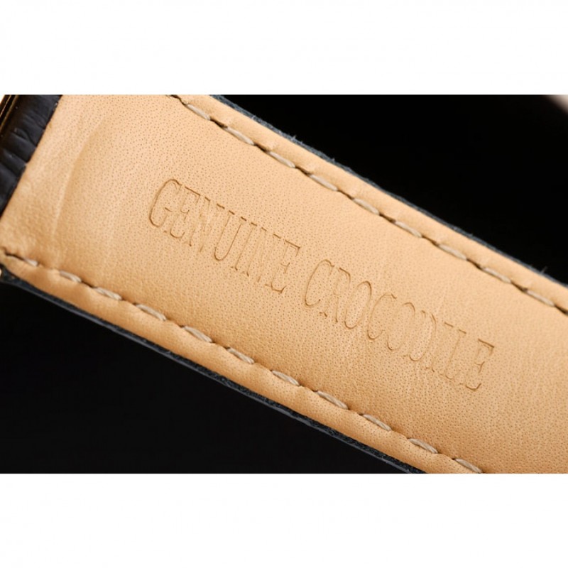 Bracciale: impresso cinturino in pelle di coccodrillo nero calore Rolex con fibbia di distribuzione in oro giallo inciso con Rolex logo sulla parte superiore