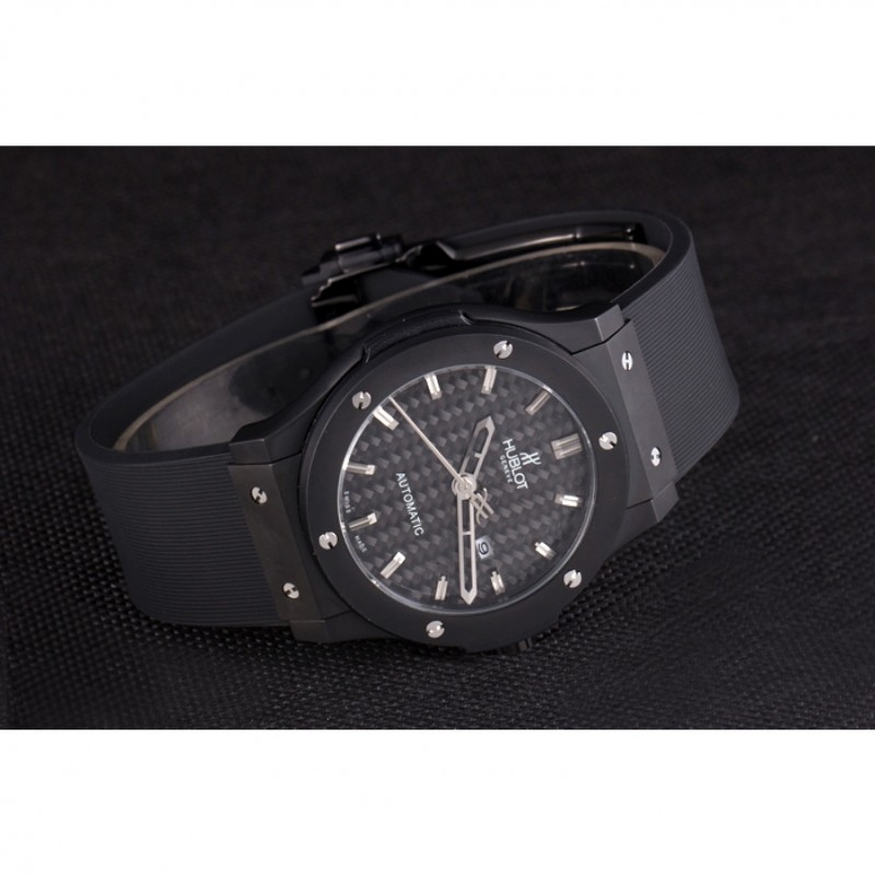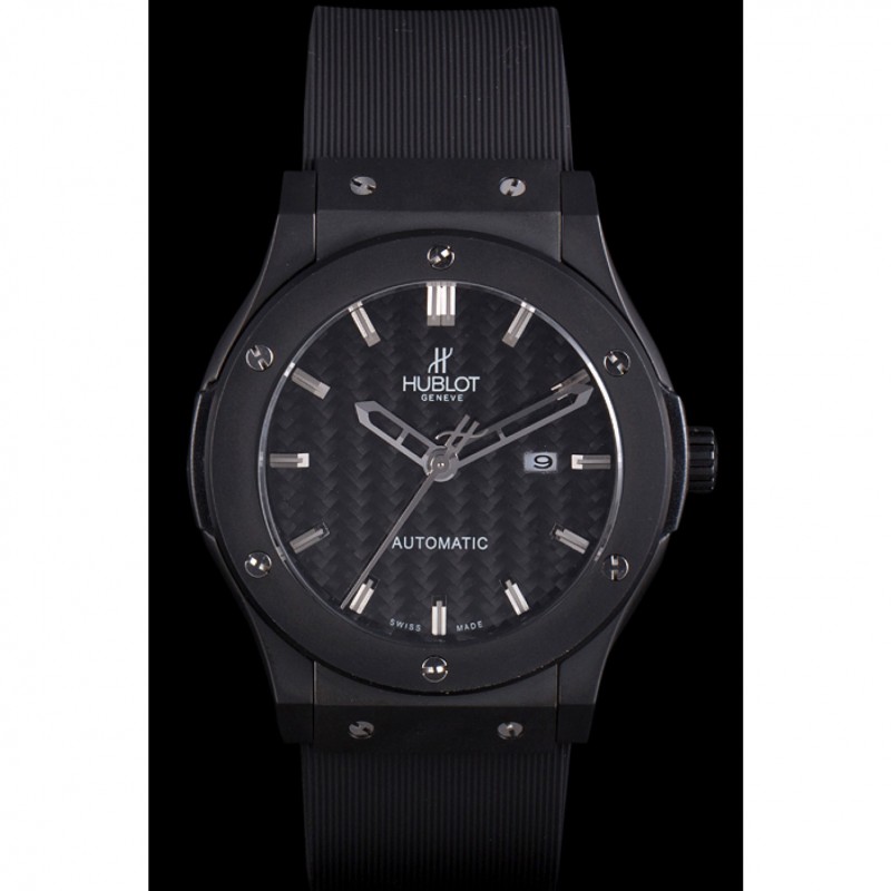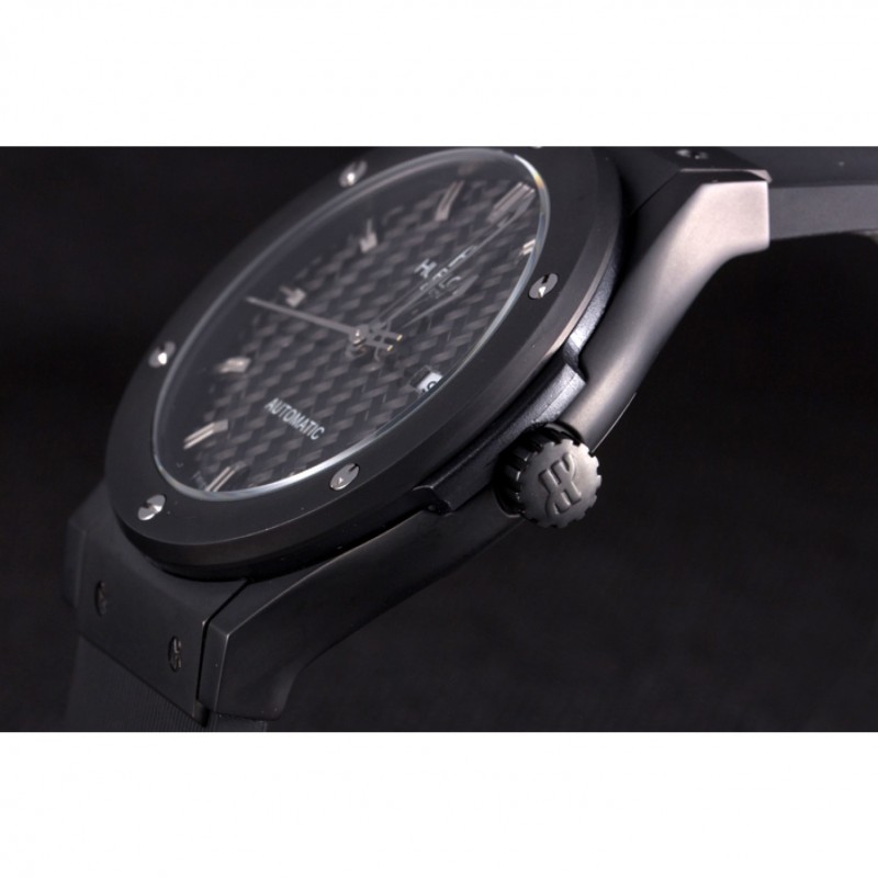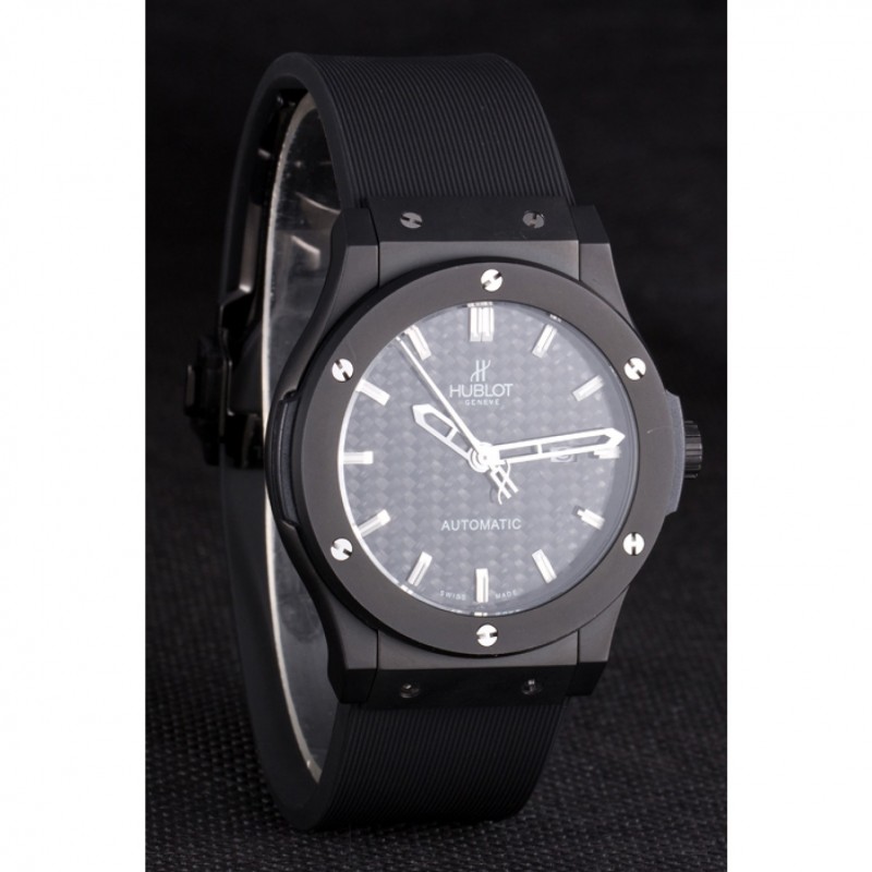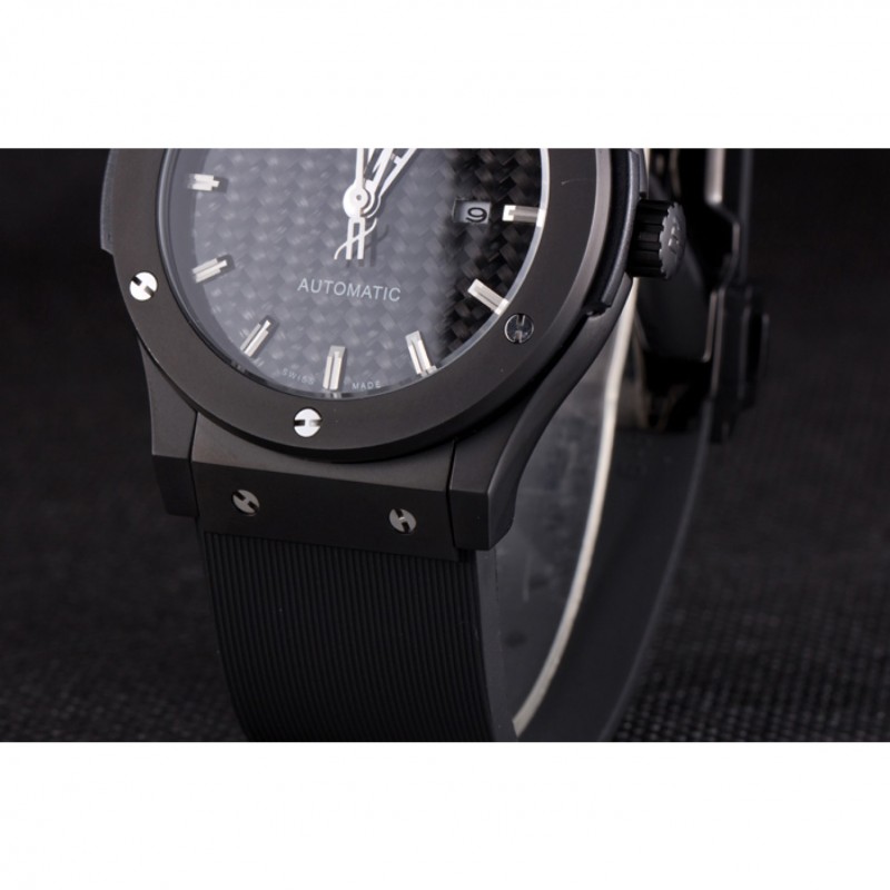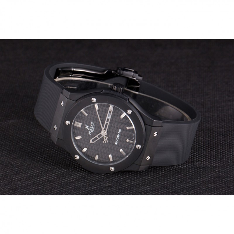 Bracciale: Hublot Geneve calore in rilievo a coste nero cinturino in gomma con Hublot Geneve incisa spinta catenaccio del gancio rilascio di ioni-plated