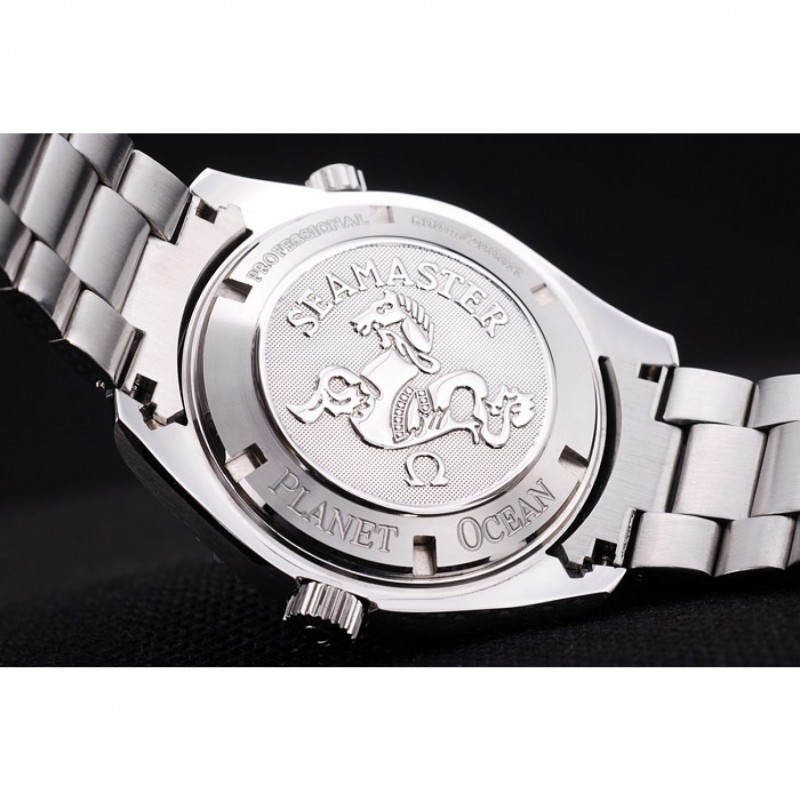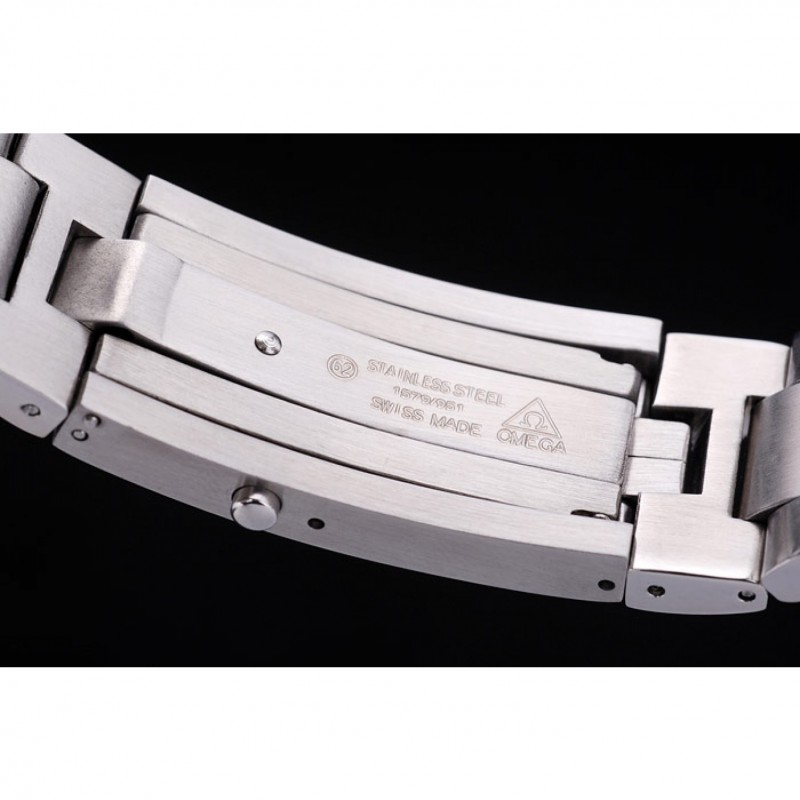 corona: lucido intaglio corona in acciaio inox con Omega logo, più un’altra corona simile in alto opposta