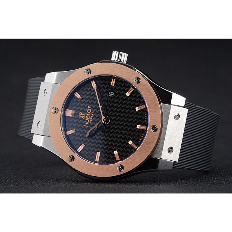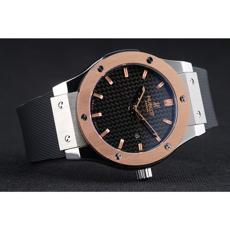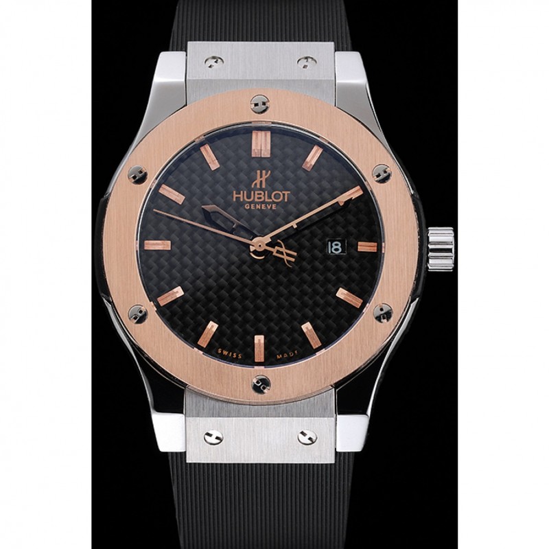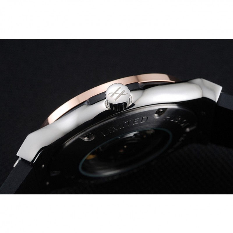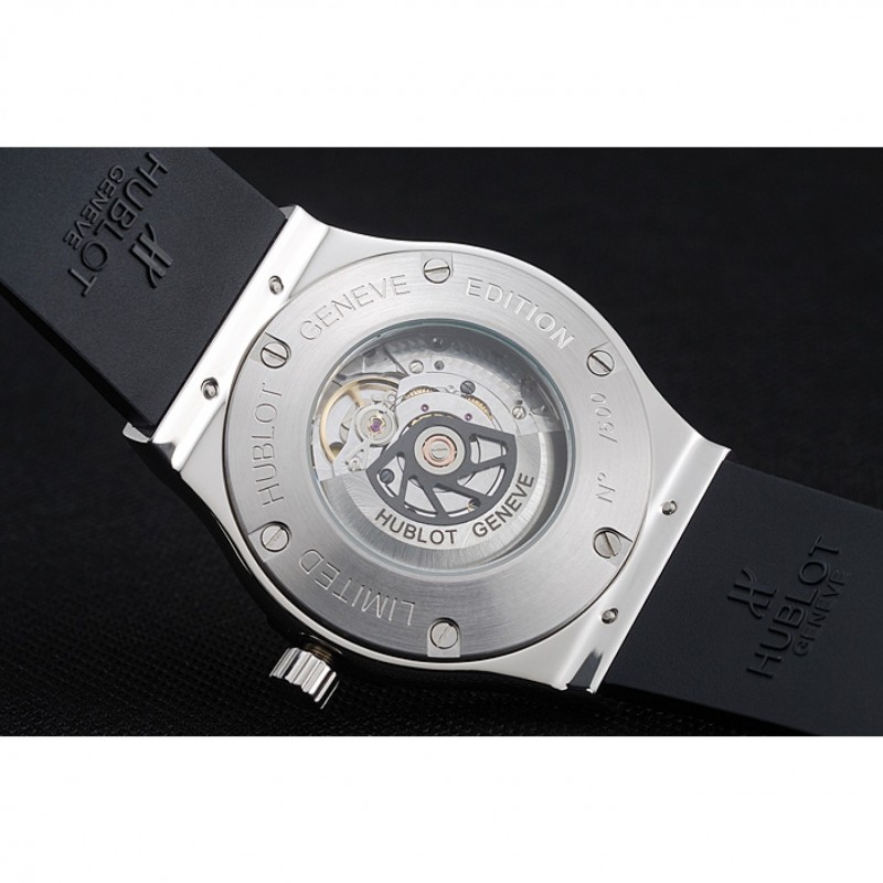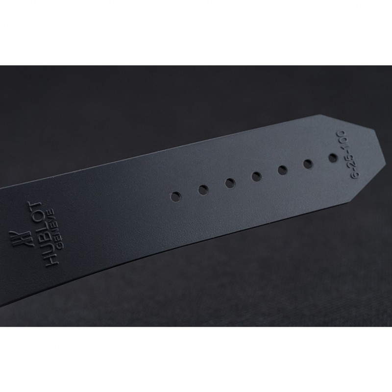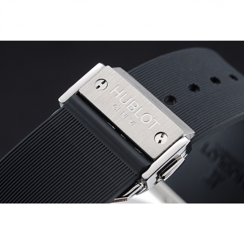 Bracciale: Hublot Geneve calore goffrato cinturino in gomma scanalata nera con Hublot Geneve incisi spazzolato catenaccio del gancio di rilascio di spinta in acciaio inox