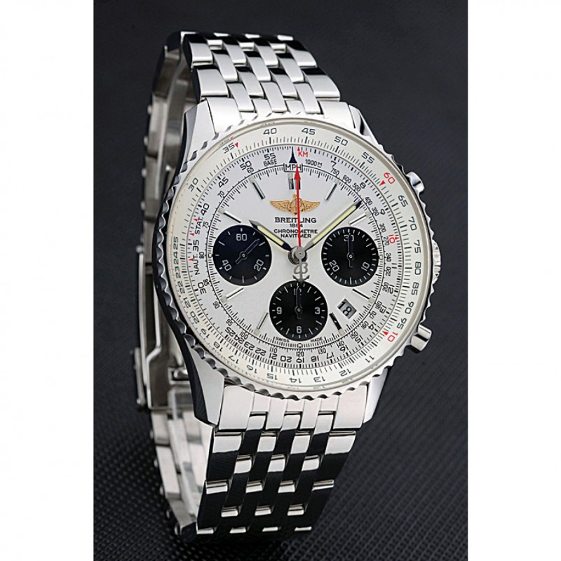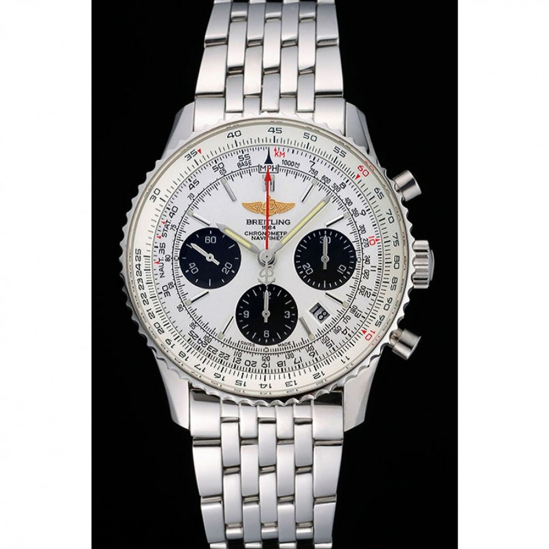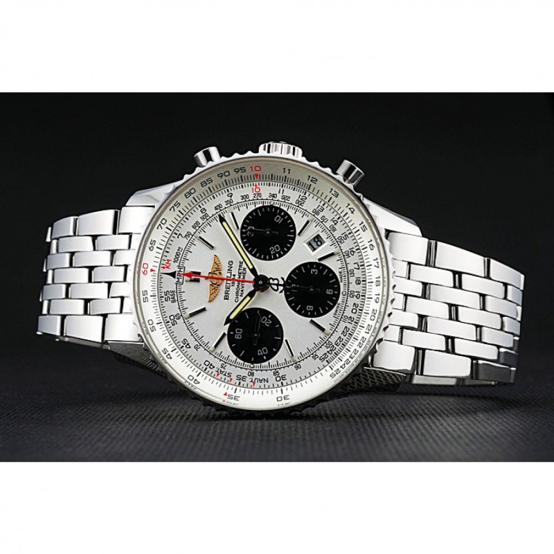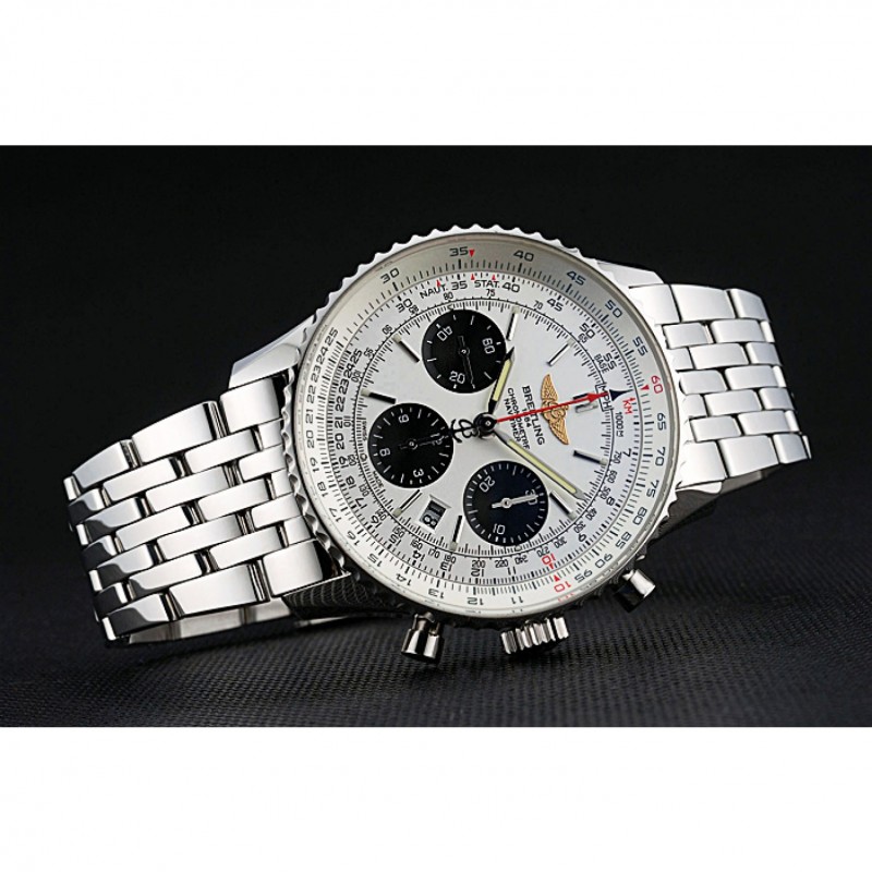 corona: Breitling logo inciso lucido corona intaglio in acciaio inox con una piccola rotonda pulsante corona su entrambi i lati di esso