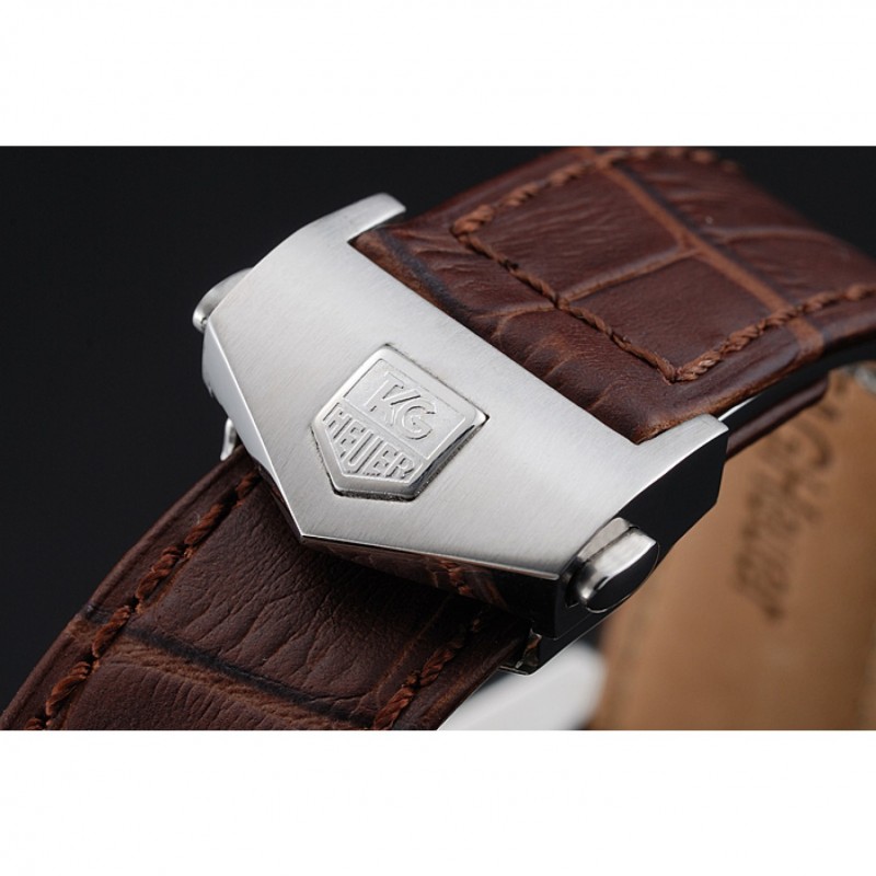 Bracciale: cinturino in pelle di coccodrillo marrone Tag Heuer calore in rilievo con Tag Heuer incisi spazzolato push-rilascio in acciaio inox pieghevole in chiusura