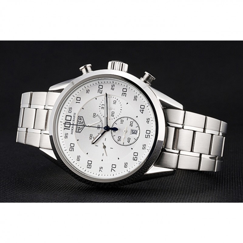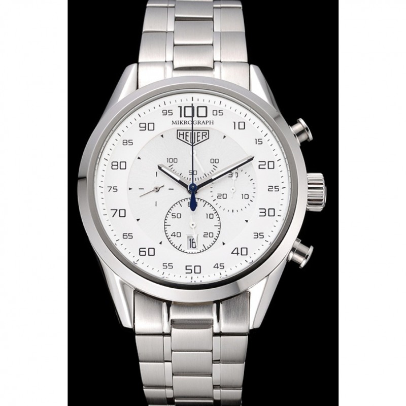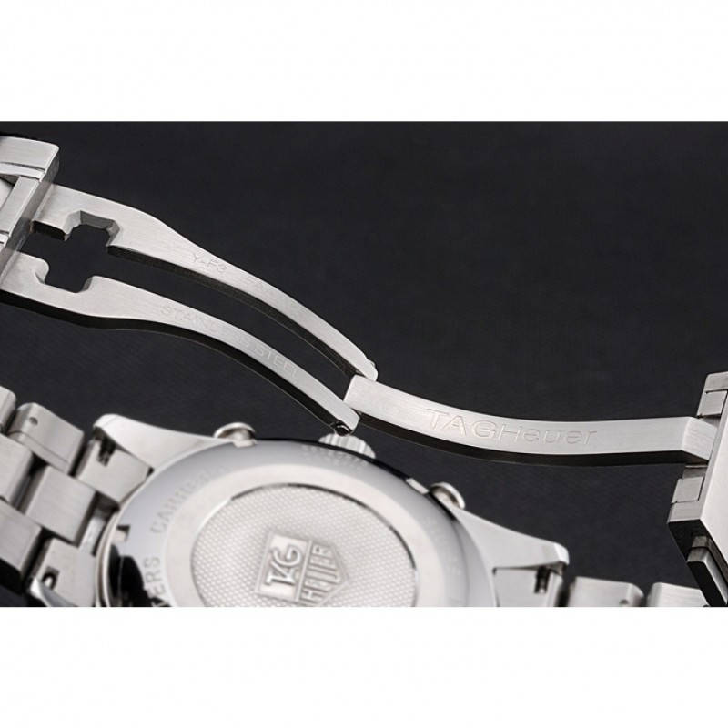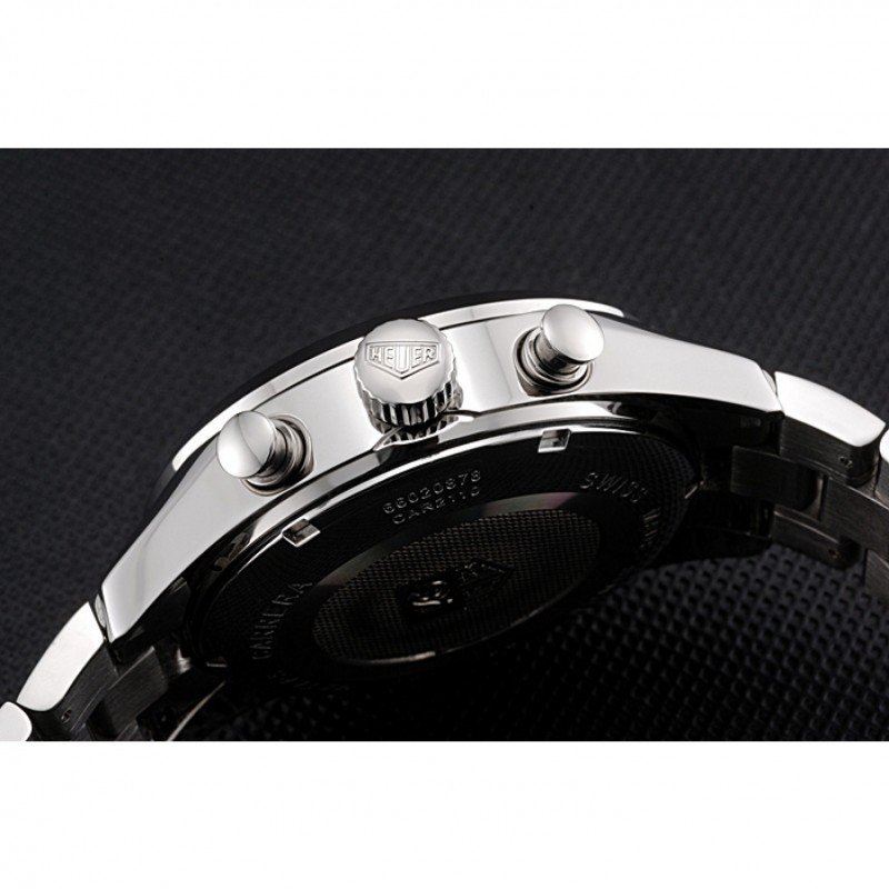 Corona : Tag Heuer logo inciso lucido corona intaglio in acciaio inox con rotonde corone di pulsante su entrambi i lati di esso