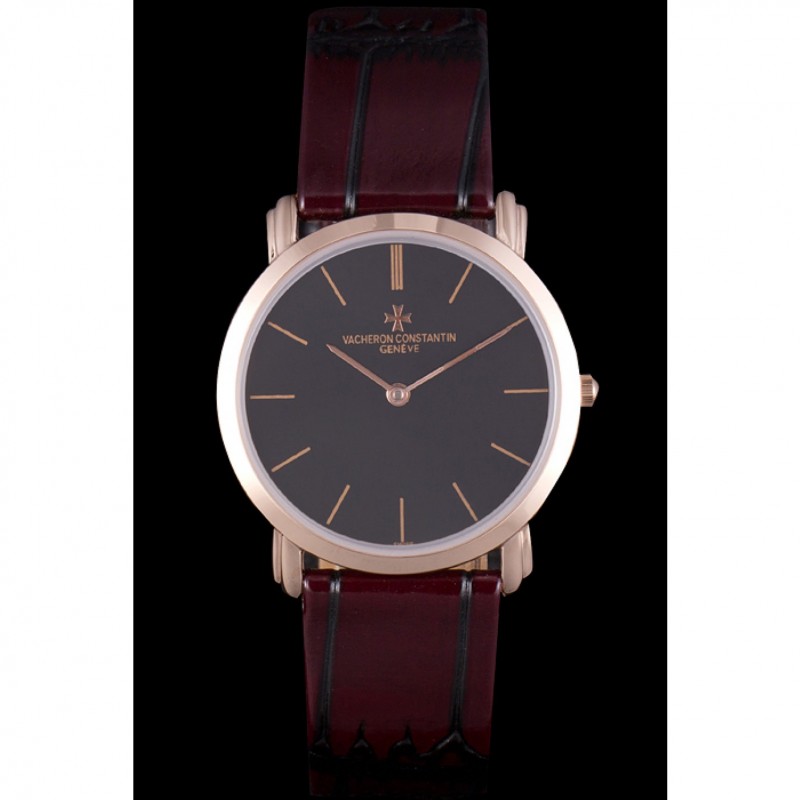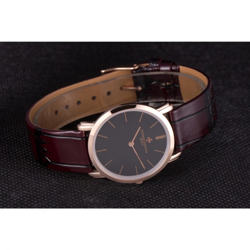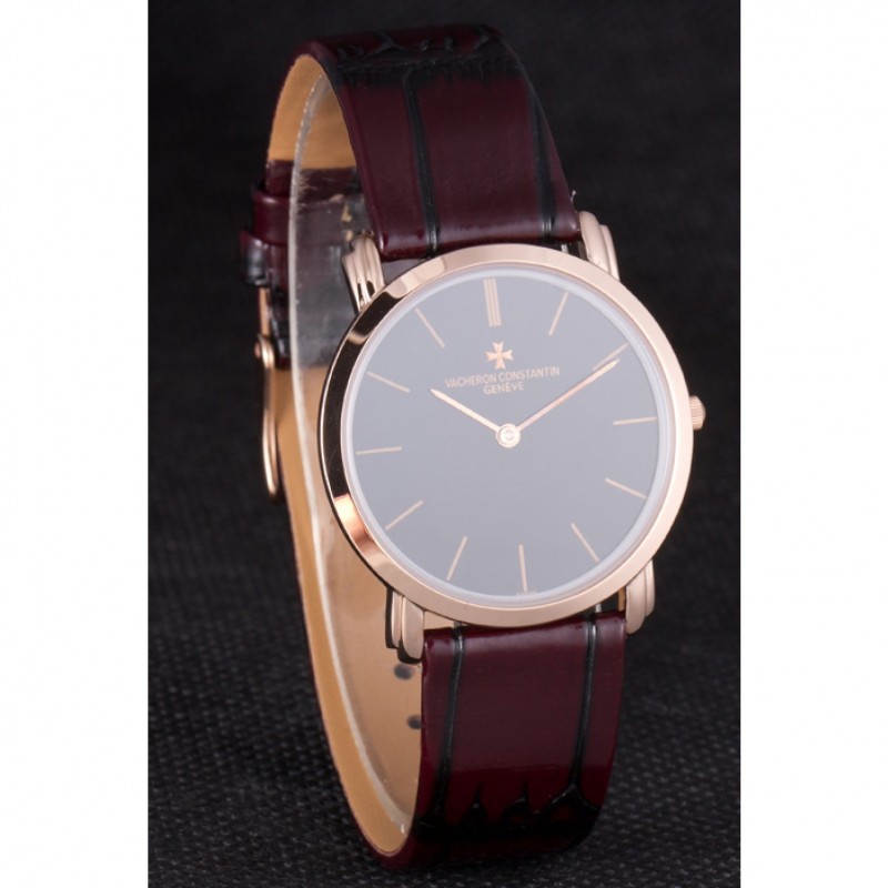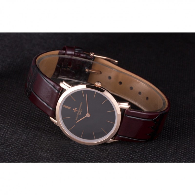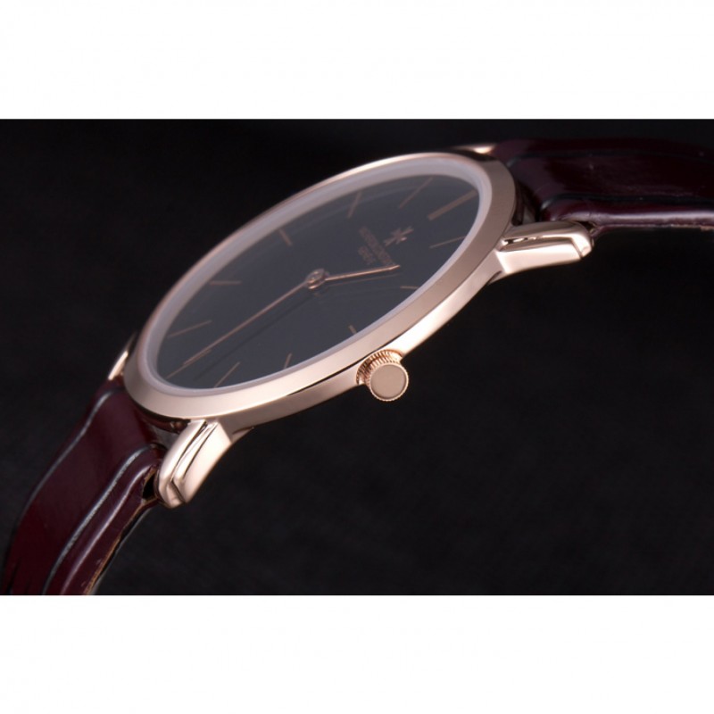 1 recensione per Vacheron Constantin Patrimony quadrante nero Bracciale in pelle cassa in oro rosa Rich Maroon
