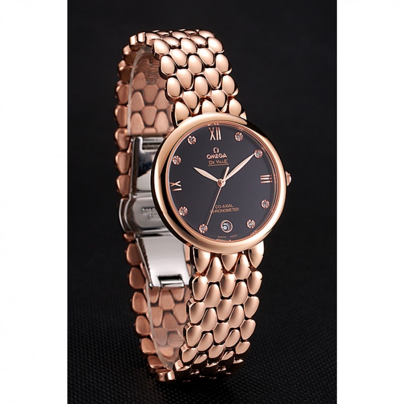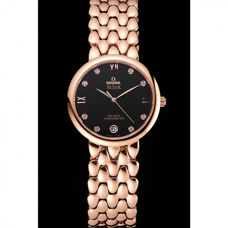 SS Orologi Replica Omega De Ville Prestige Quadrante Nero con Diamanti in Oro Rosa: Eleganza e Precisione