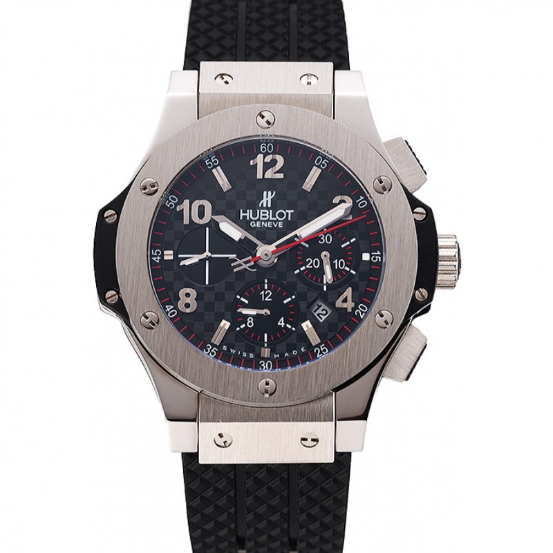 SS Orologi Replica Hublot Big Bang Black Caucho Strap nero a scacchi Dial 80193
