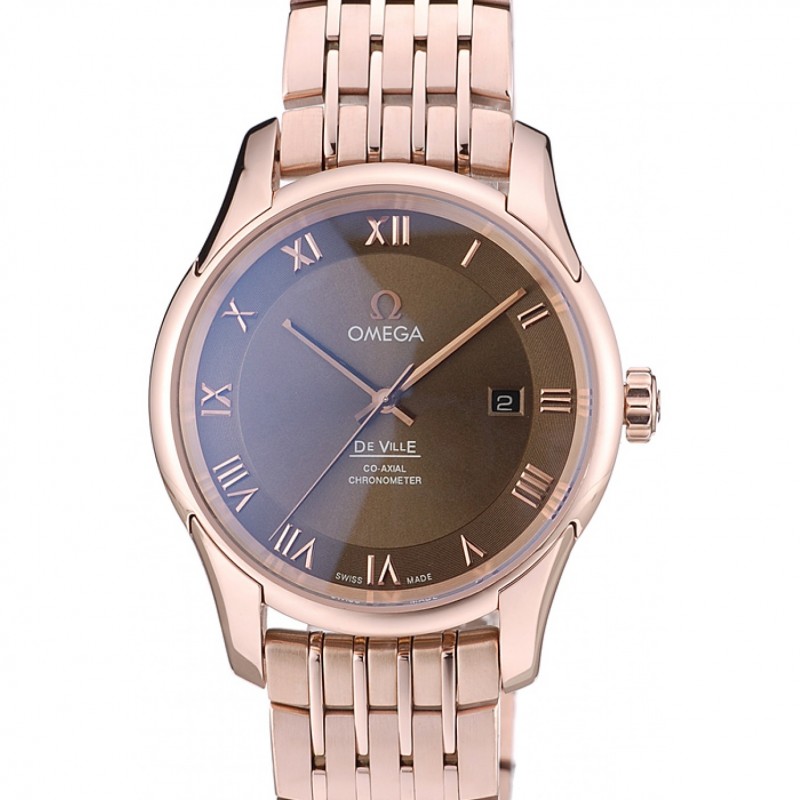 Numeri Omega DeVille svizzero Rose lunetta in oro romane quadrante marrone 7610