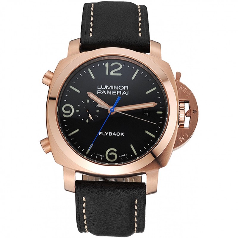 Lusso Orologi Replica Panerai Luminor 1950 3 Days Chrono Flyback quadrante nero cassa in oro rosa nera Cinturino in pelle