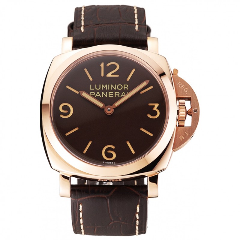 Economico Svizzero Panerai Luminor Brown Dial cassa in oro rosa cinturino in pelle marrone 1453841