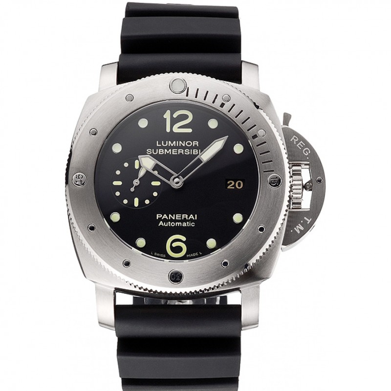 Svizzero Panerai Luminor Submersible quadrante nero Cassa in acciaio nero cinturino in caucciù