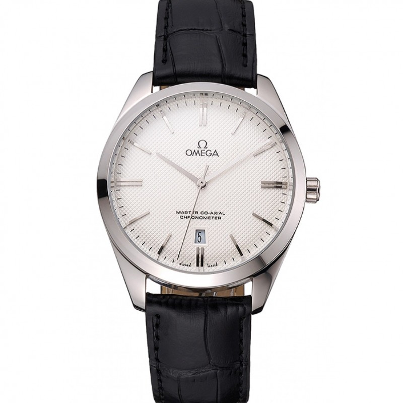 Omega Tresor Maestro Co-Axial quadrante bianco Cassa in acciaio nero cinturino in pelle