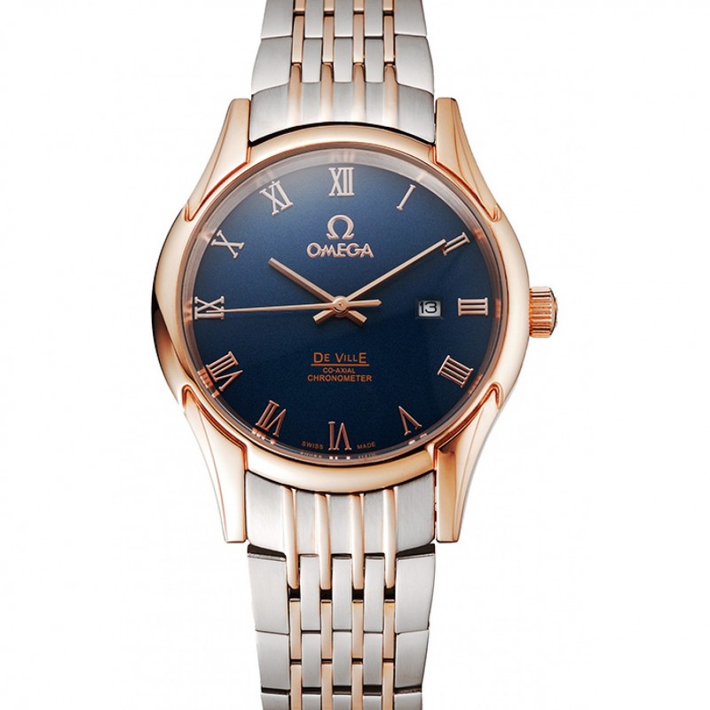 Omega De Ville Quadrante Blu cassa in oro rosa due braccialetto Tone 1453783