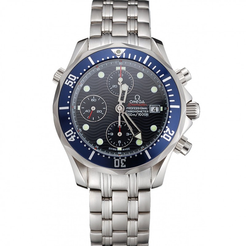 SS Orologi Replica Svizzero Omega Seamaster Chronograph 300m Quadrante Blu Cassa in acciaio blu lunetta in acciaio e bracciale