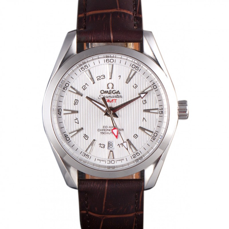 Omega Seamaster argento Lunetta con quadrante bianco e cinturino in pelle di 621.573 Brown